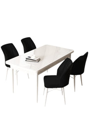 Este conjunto foi projetado não apenas para fornecer funcionalidade, mas também para aprimorar a estética da sua área de jantar. O design elegante e a combinação moderna de cores branca e preta irão instantaneamente elevar o visual do seu espaço, fazendo com que cada refeição pareça uma ocasião especial.