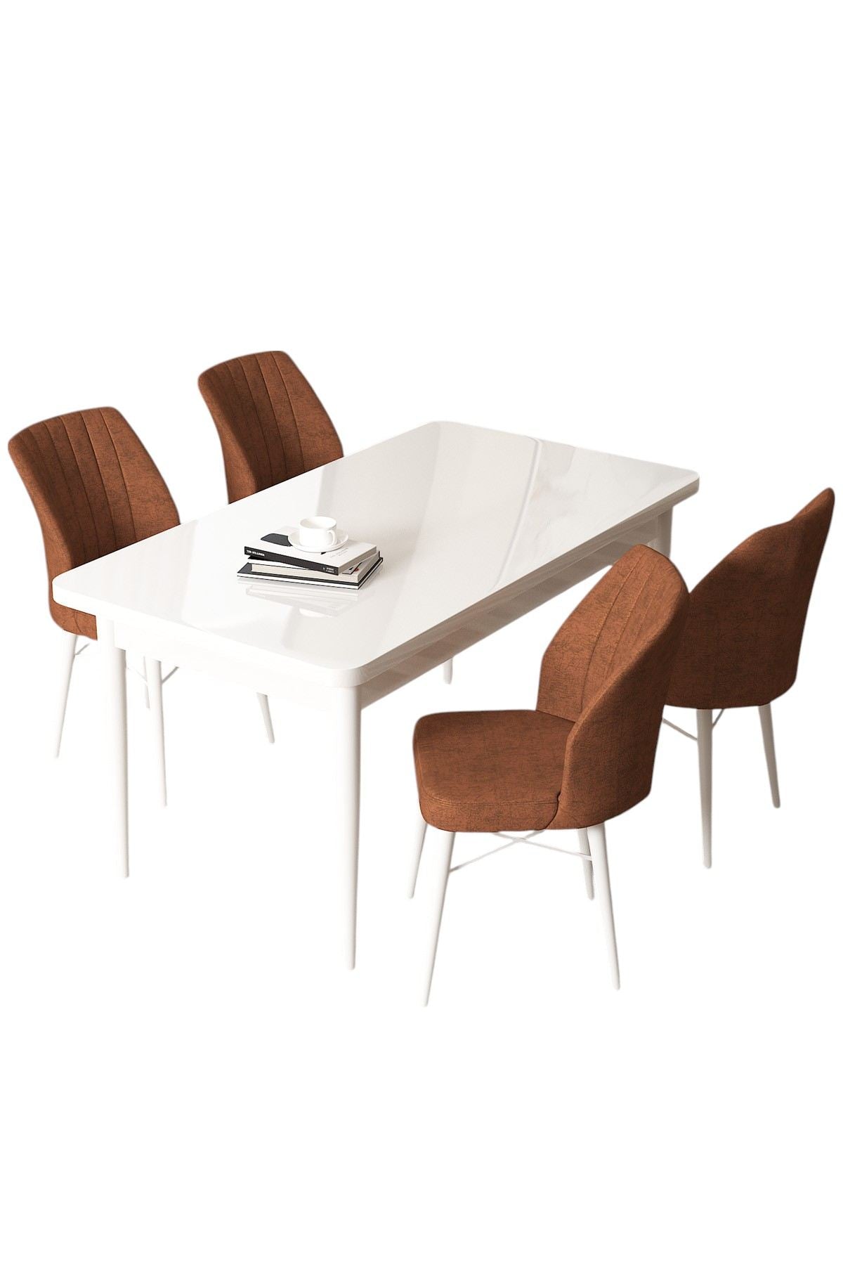 Este conjunto vem em uma combinação deslumbrante de cores branca e vermelho telha, adicionando um toque de cor à sua área de jantar. O tecido utilizado para as cadeiras é Jerry, que é não apenas macio ao toque, mas também fácil de limpar e manter. A altura do assento de 46 cm garante uma experiência de jantar confortável para você e seus convidados.