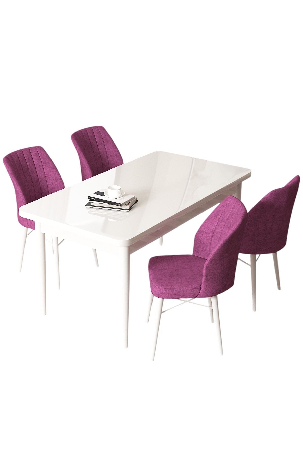 Conjunto de mesa de jantar e cadeiras (5 peças) – 110 cm x 76 cm x 71 cm – Branco e Roxo – Aglomerado e Metal