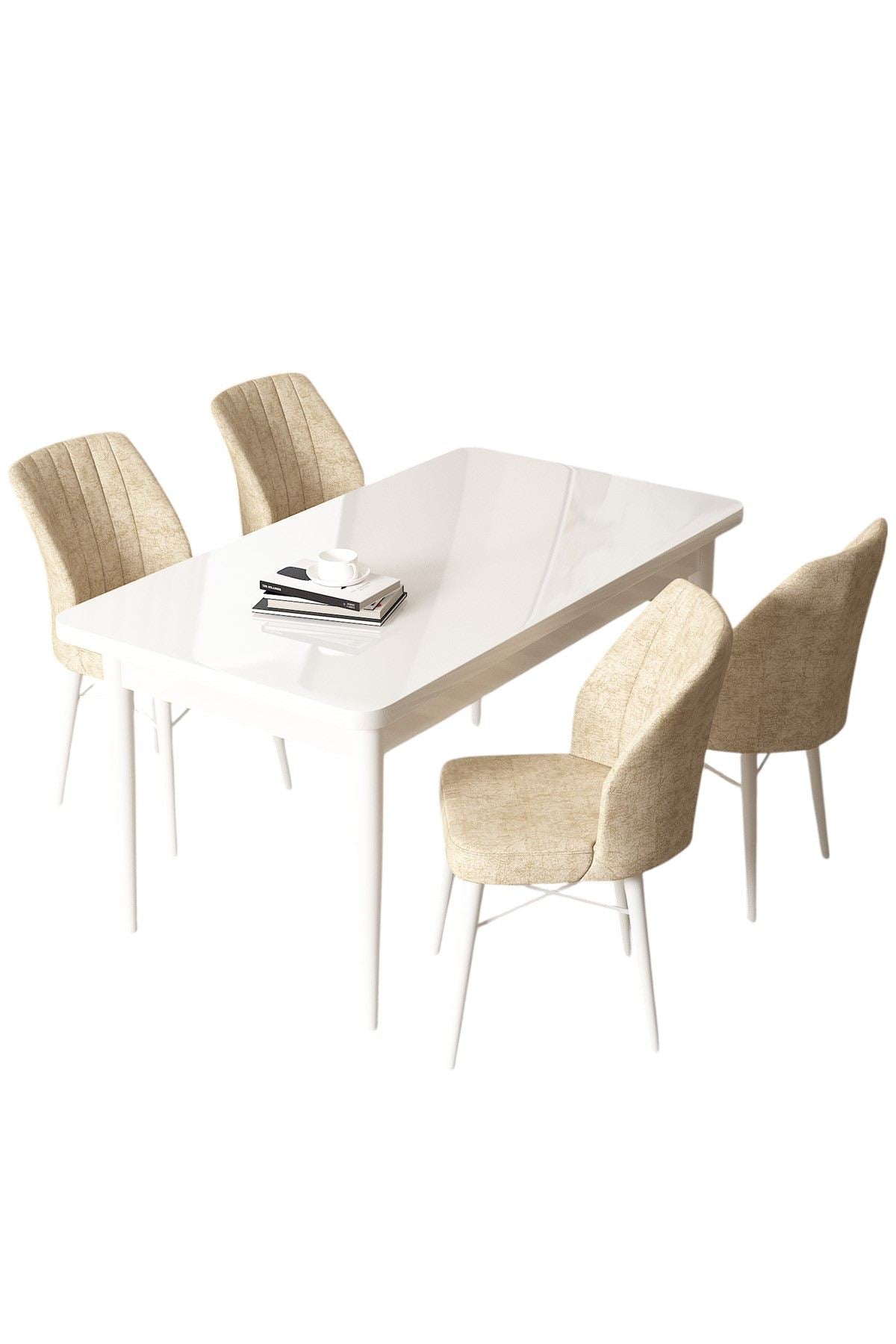 Conjunto de mesa de jantar e cadeiras – 110 cm x 76 cm x 71 cm – Branco e Creme – Aglomerado e Metal