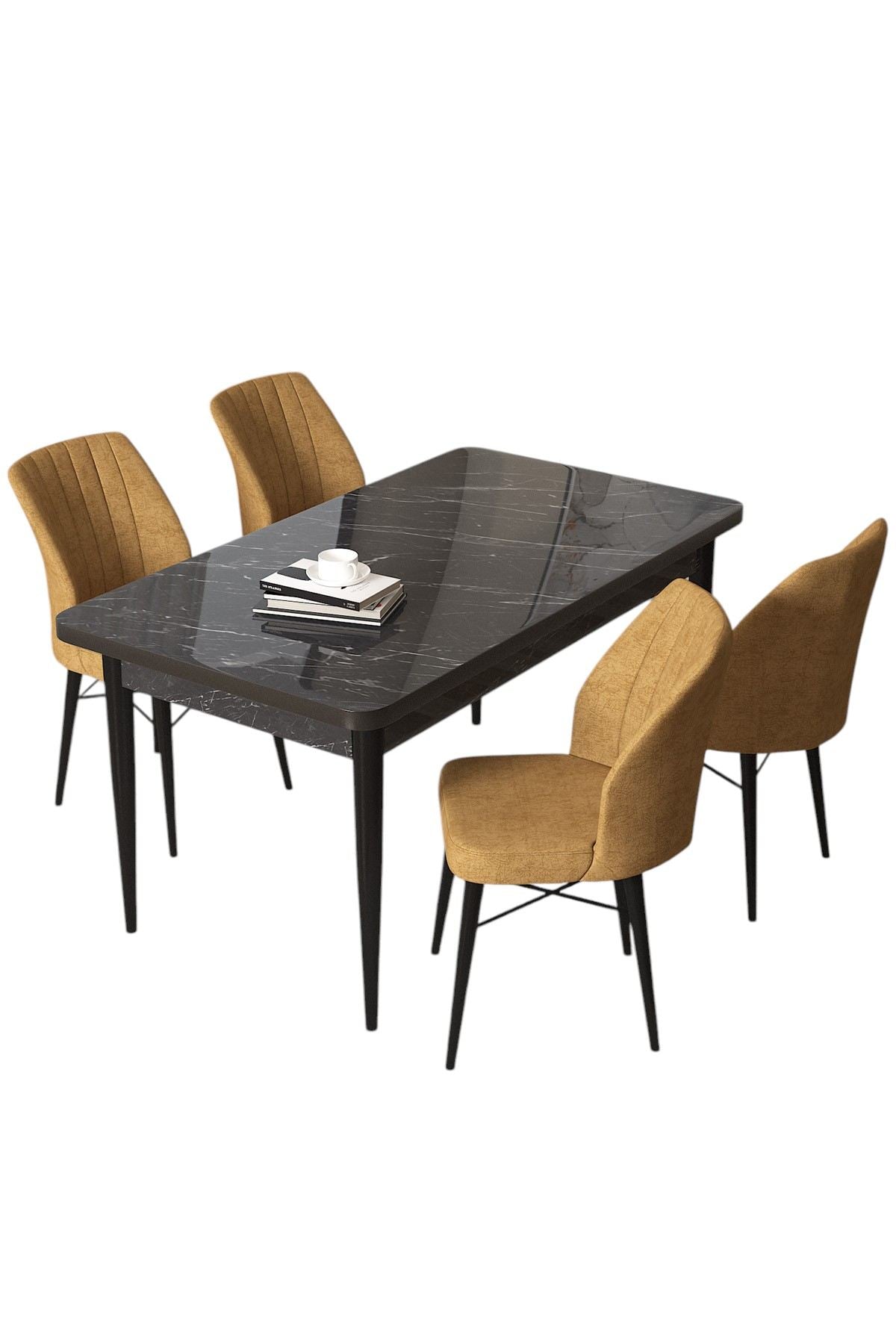 Conjunto de mesa de jantar e cadeiras (5 peças) – 110x76x71 cm – Preto Mármore e Cappuccino – MDF e metal