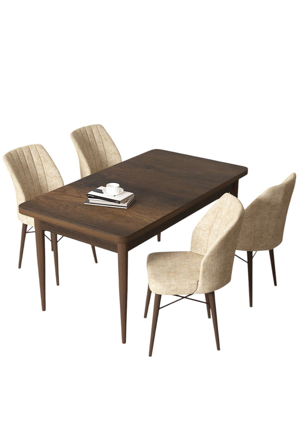 Transforme sua sala de jantar em um espaço elegante e convidativo com nosso requintado Conjunto de Mesa e Cadeiras de Jantar. Feito com 100% de aglomerado revestido de melamina e pernas de madeira robustas, este conjunto exala elegância e durabilidade. As estruturas das cadeiras são feitas de metal com pernas de madeira, proporcionando um toque moderno ao design clássico.