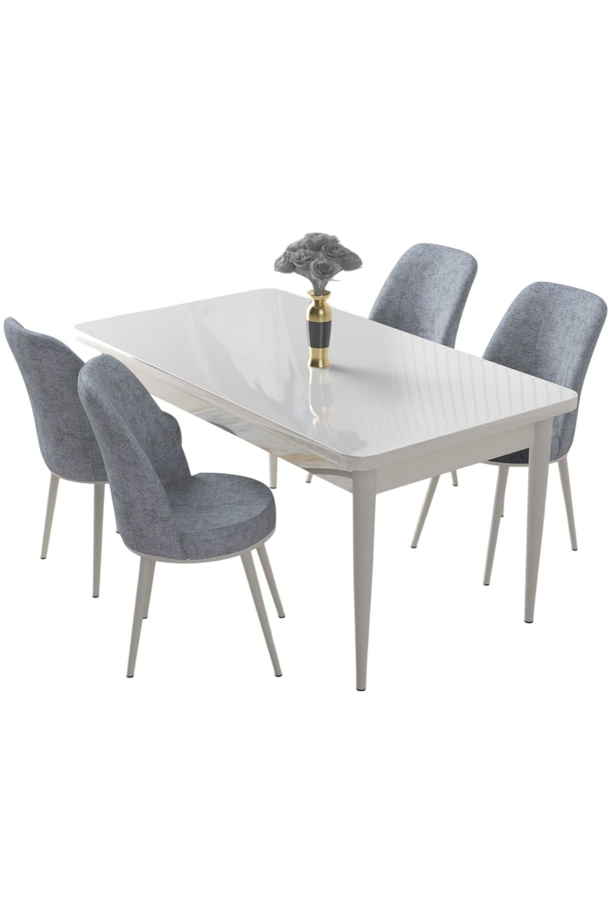 Conjunto de mesa de jantar e cadeiras – 110 cm x 76 cm x 71 cm – Branco e Cinza – Aglomerado e Metal