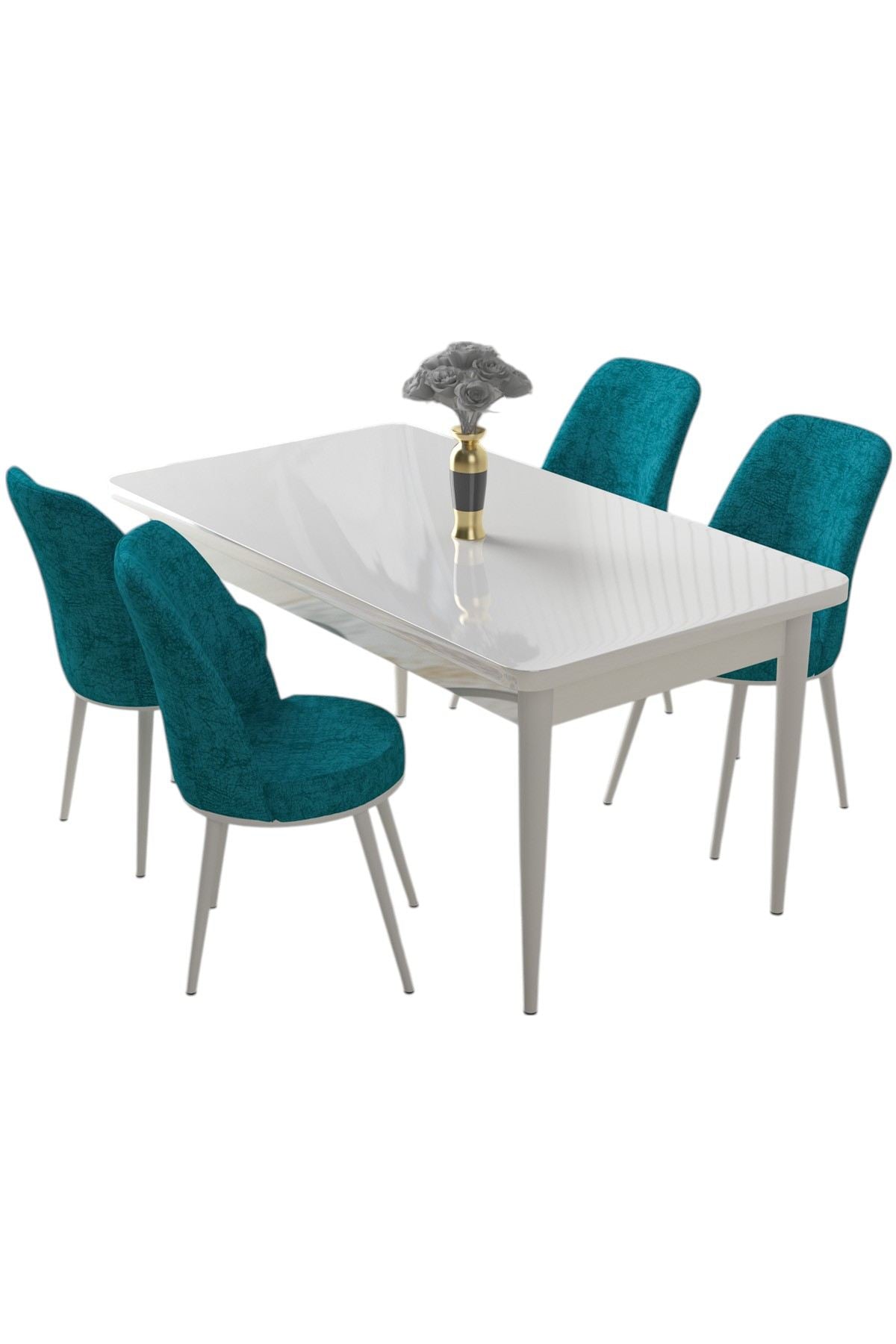 Conjunto de mesa de jantar e cadeiras – 110 cm x 76 cm x 71 cm – Branco e Turquesa – Aglomerado e Metal