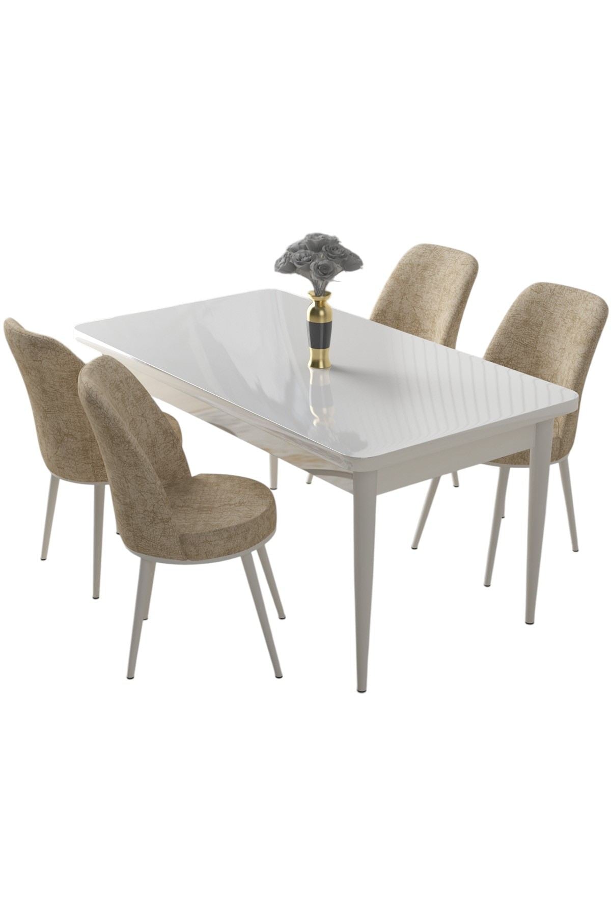 Conjunto de mesa de jantar e cadeiras – 110 cm x 76 cm x 71 cm – Branco e Creme – Aglomerado e Metal