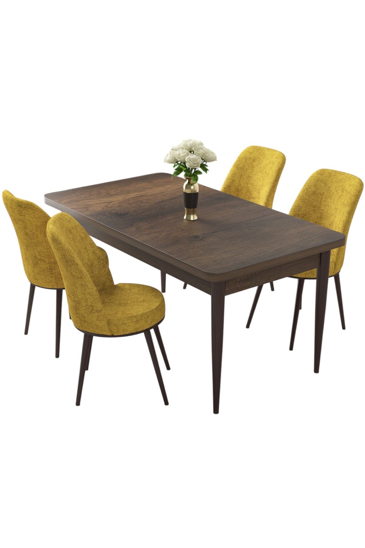 Conjunto de mesa de jantar e cadeiras – 110x76x71 cm – Barroco e Mostarda – Aglomerado e Metal
