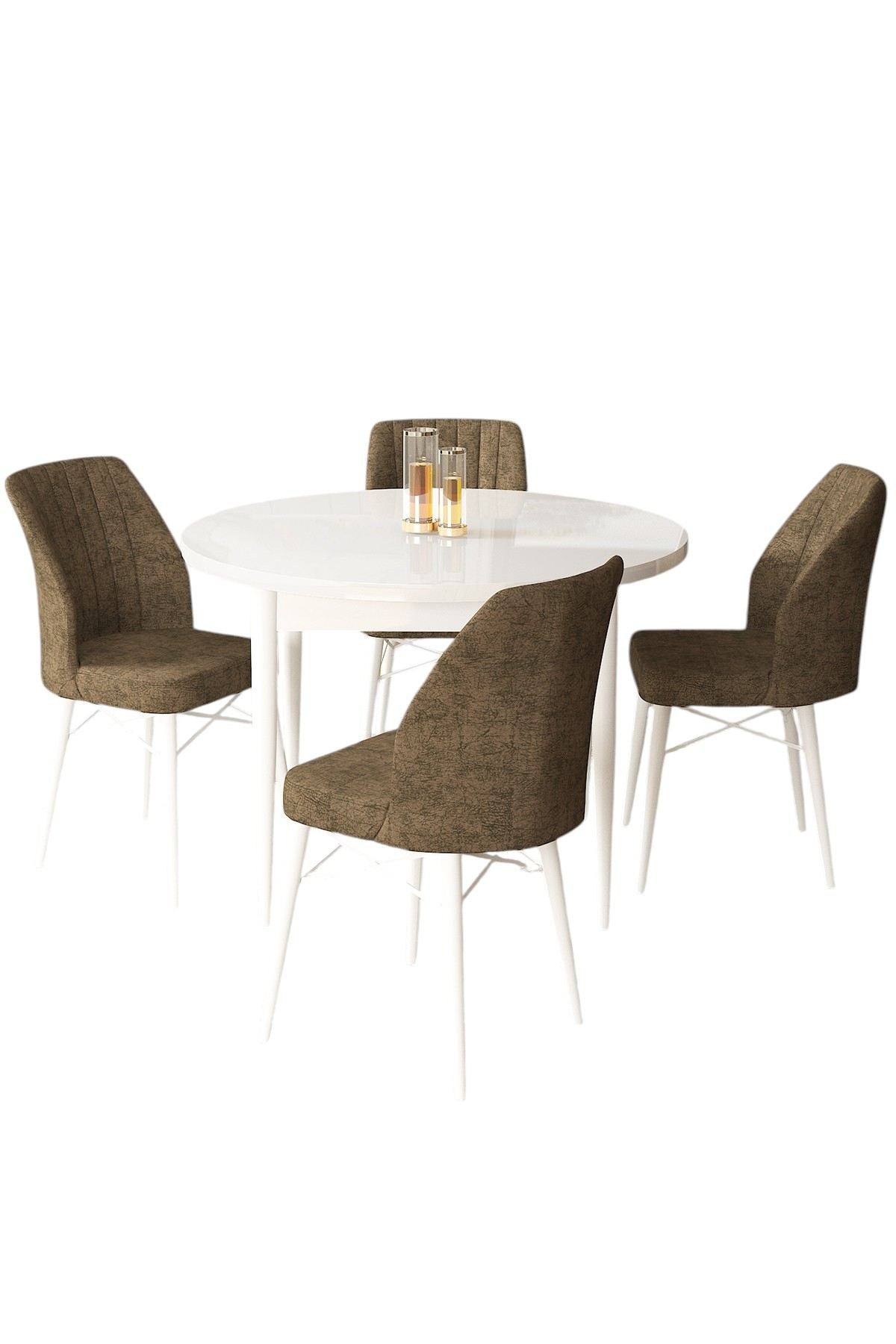 Conjunto de Mesa de Jantar e Cadeiras – 90 cm x 75 cm x 90 cm – Branco e Marrom – Aglomerado e Metal