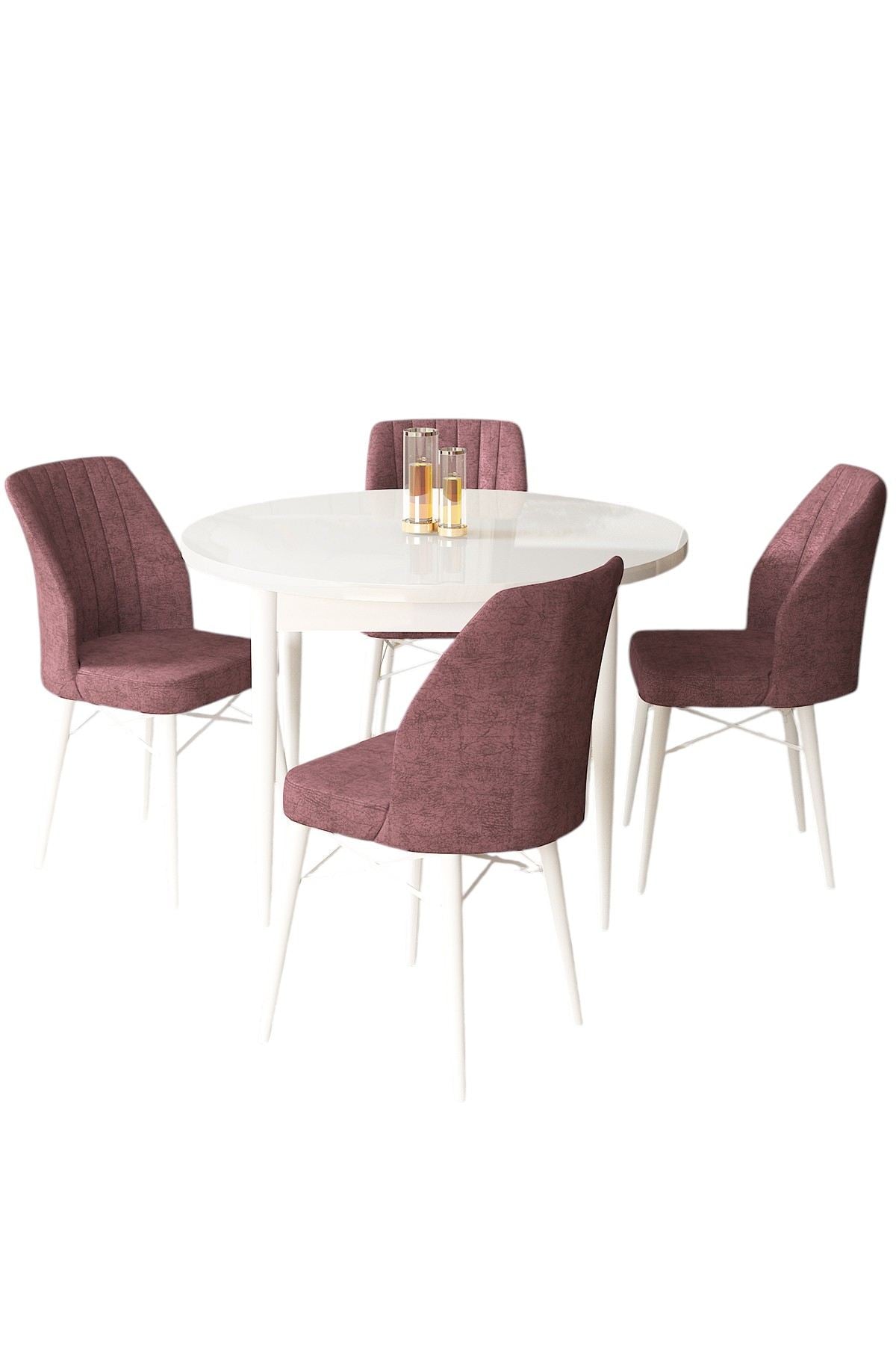 Conjunto de mesa de jantar e cadeiras (5 peças) – 90 cm x 75 cm x 90 cm – Branco e Rosa Envelhecido – Aglomerado e Metal