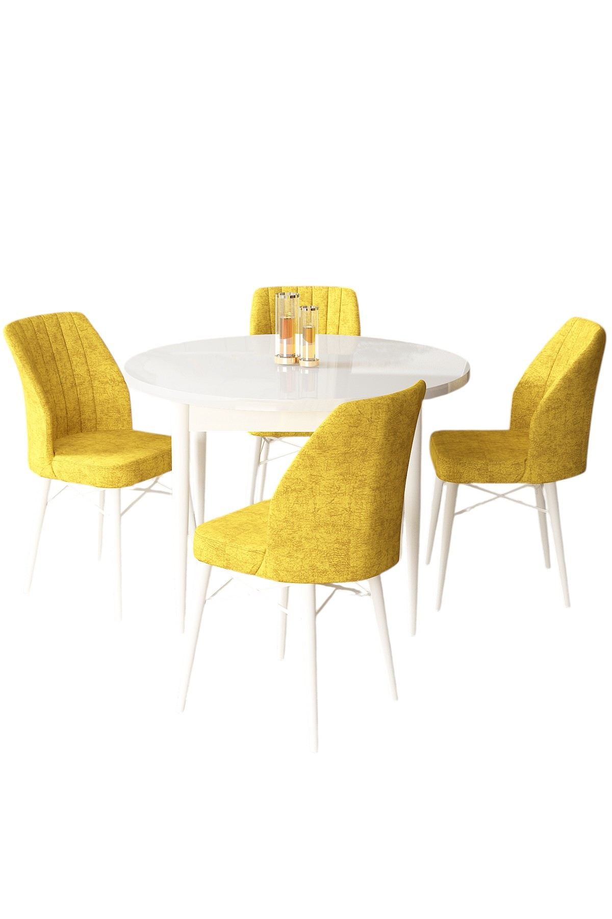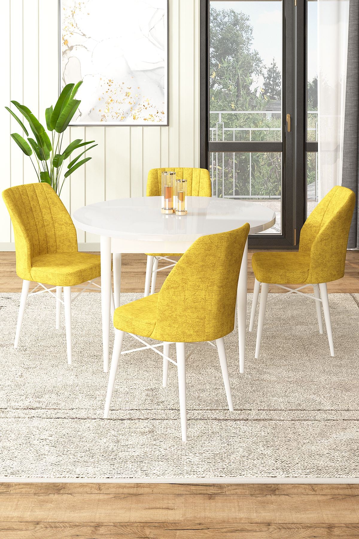 Conjunto de mesa de jantar e cadeiras – 90 cm x 75 cm x 90 cm – Branco e Mostarda – Aglomerado e Madeira