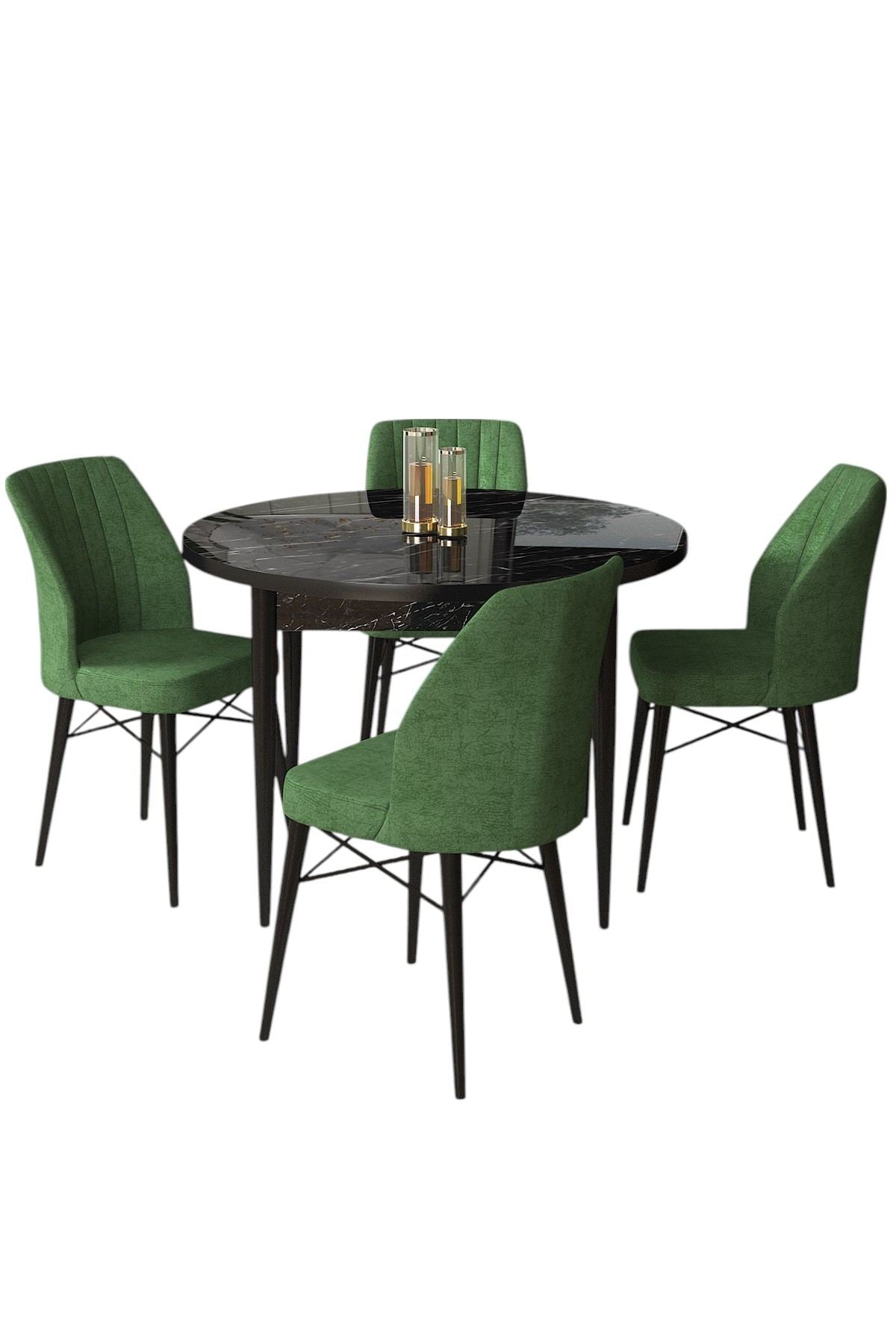 Conjunto de mesa de jantar e cadeiras – 90x75x90 cm – Mármore Preto e Cáqui – Metal e Madeira
