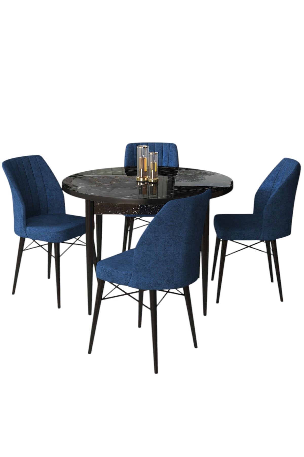- Cor: Mesa de Mármore Preto, Cadeiras Azul-Marinho