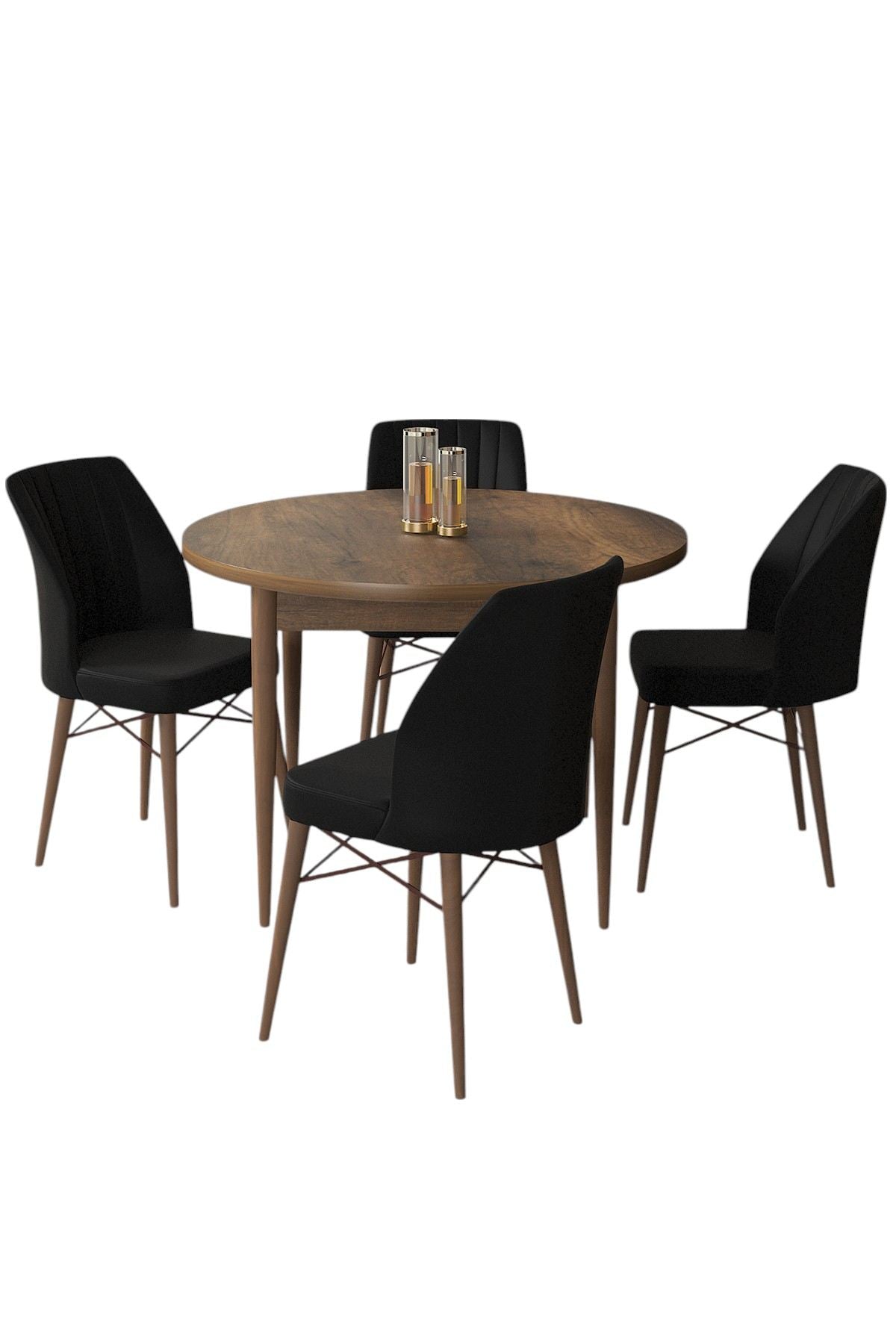 Conjunto de mesa de jantar e cadeiras – 90 cm x 75 cm x 90 cm – Barroco e Preto – Aglomerado e Madeira