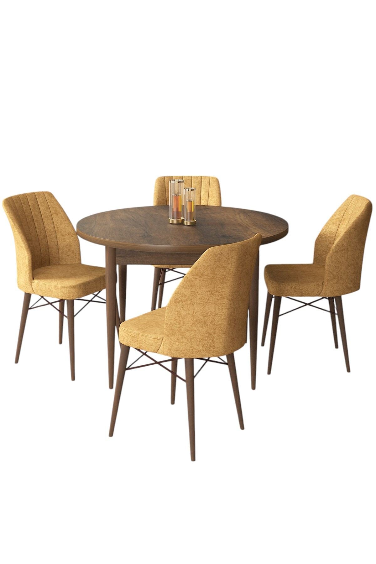 Transforme sua sala de jantar em um espaço elegante e convidativo com nosso requintado Conjunto de Mesa e Cadeiras de Jantar. Feito com 100% de aglomerado revestido de melamina e pernas de madeira robustas, este conjunto exala elegância e durabilidade. As estruturas das cadeiras são feitas de metal com pernas de madeira, garantindo estabilidade e longevidade.