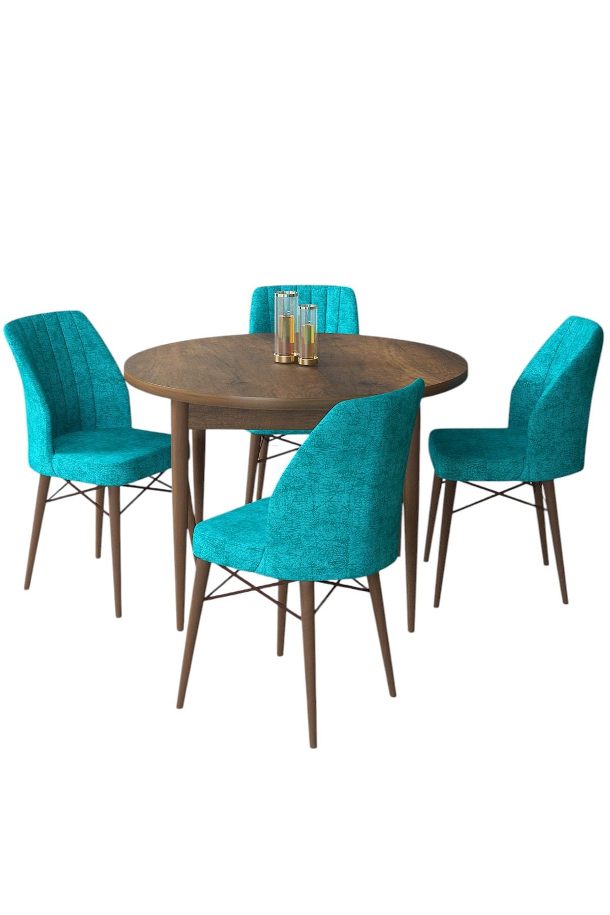 Conjunto de mesa de jantar e cadeiras – 90 cm x 75 cm x 90 cm – Barroca e Turquesa – Aglomerado e Madeira
