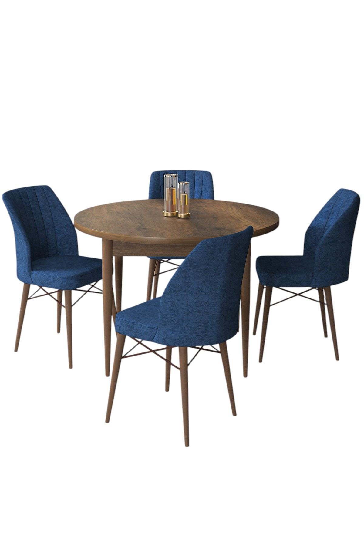 Conjunto de mesa de jantar e cadeiras - 90 cm x 75 cm x 90 cm - Azul-marinho e Barroco - Aglomerado com pernas de madeira