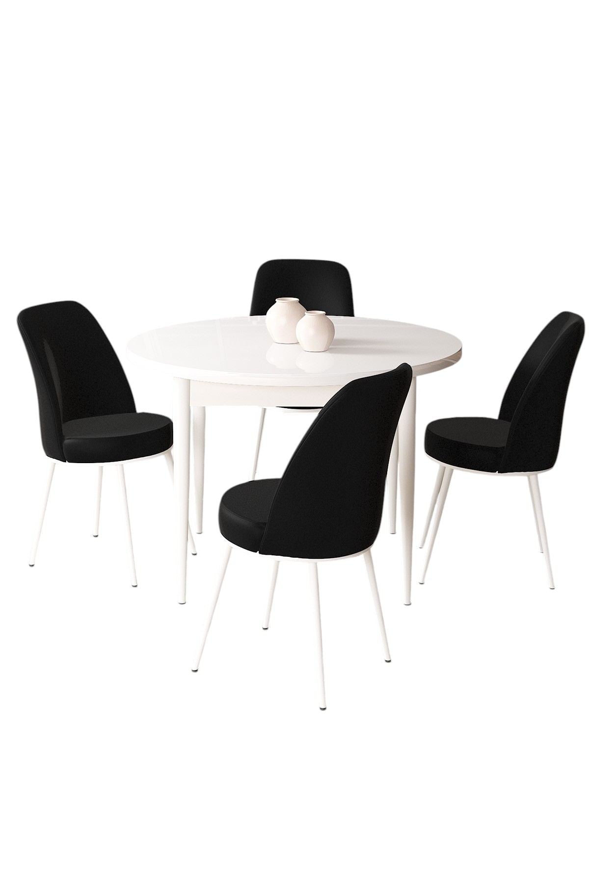 O design elegante do conjunto de mesa e cadeiras de jantar elevará instantaneamente a aparência da sua área de jantar. A combinação de cores branca e preta adiciona um toque contemporâneo que impressionará seus convidados e criará uma atmosfera acolhedora para as refeições em família.