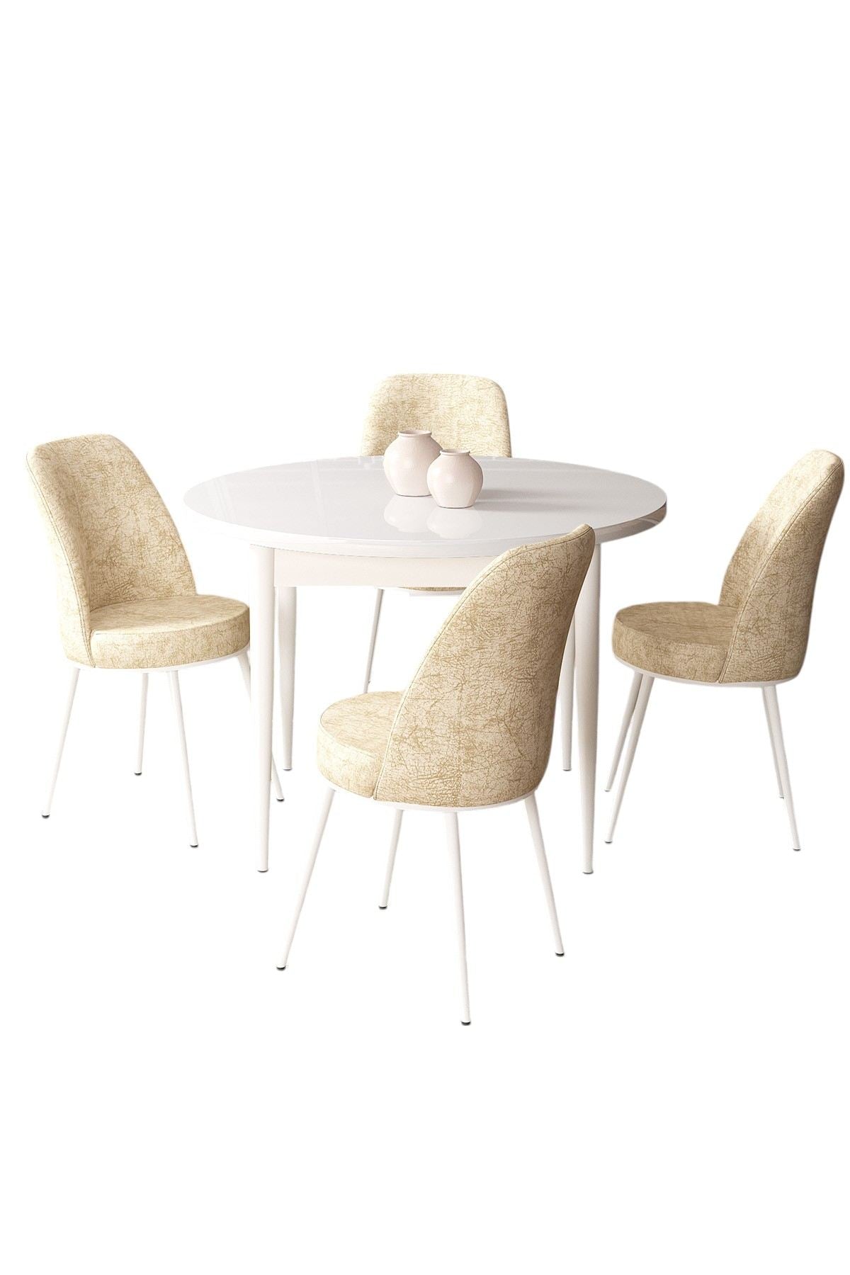Conjunto de mesa de jantar e cadeiras – 90 cm x 75 cm x 90 cm – Branco e Creme – Aglomerado e Metal
