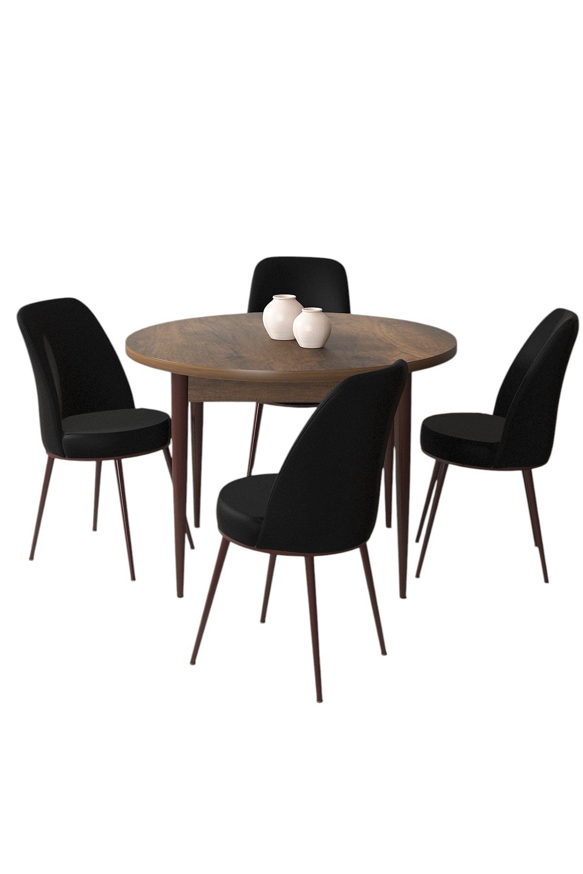 Conjunto de mesa de jantar e cadeiras (5 peças) – 90x75x90 cm – Barroco e Preto – Aglomerado com metal