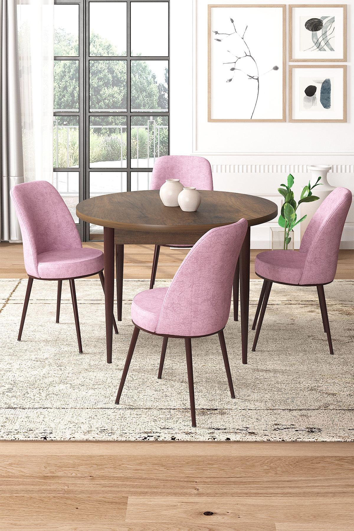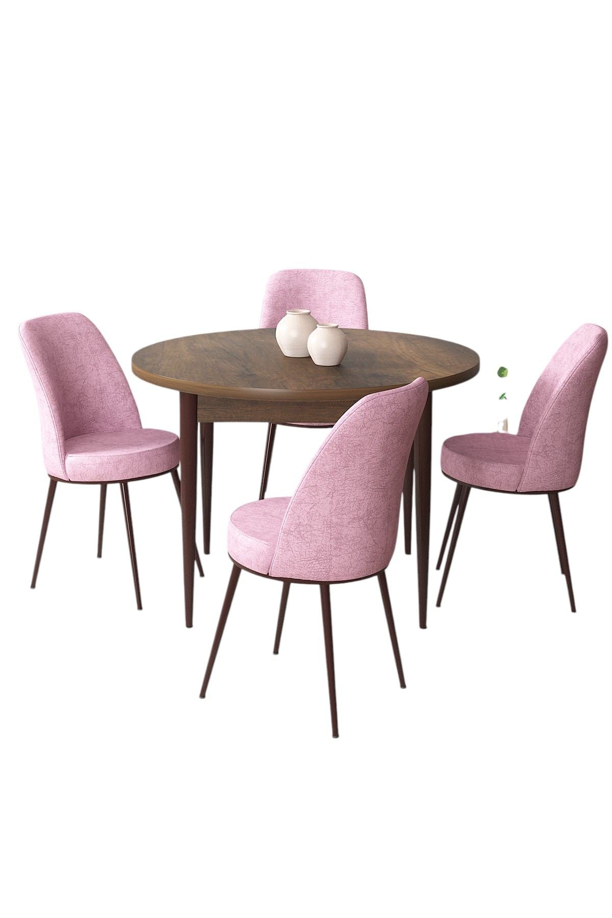Conjunto de mesa de jantar e cadeiras (5 peças) – 90 cm x 75 cm x 90 cm – Rosa e Barroco – Melamina e metal