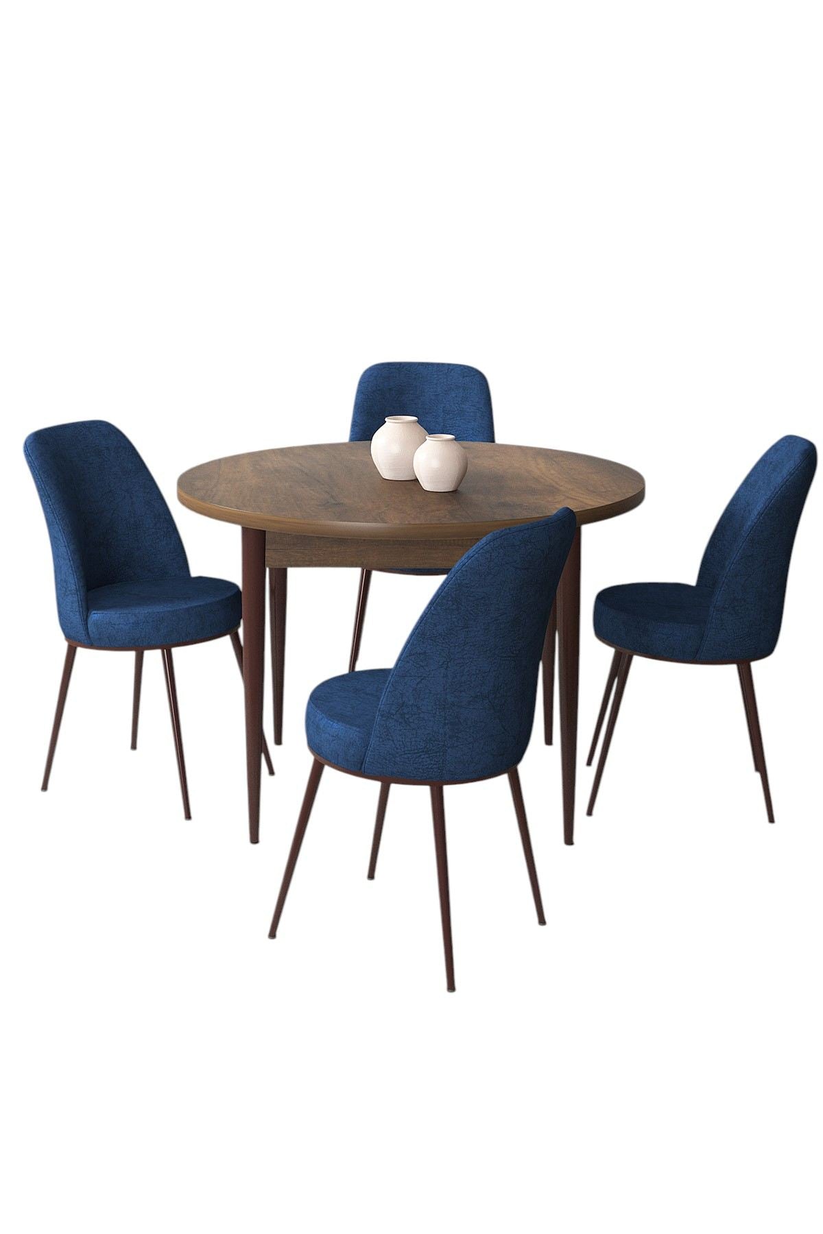 Conjunto de mesa de jantar e cadeiras (5 peças) – 90 cm x 75 cm x 90 cm – Azul Marinho e Barroca – Aglomerado e Metal