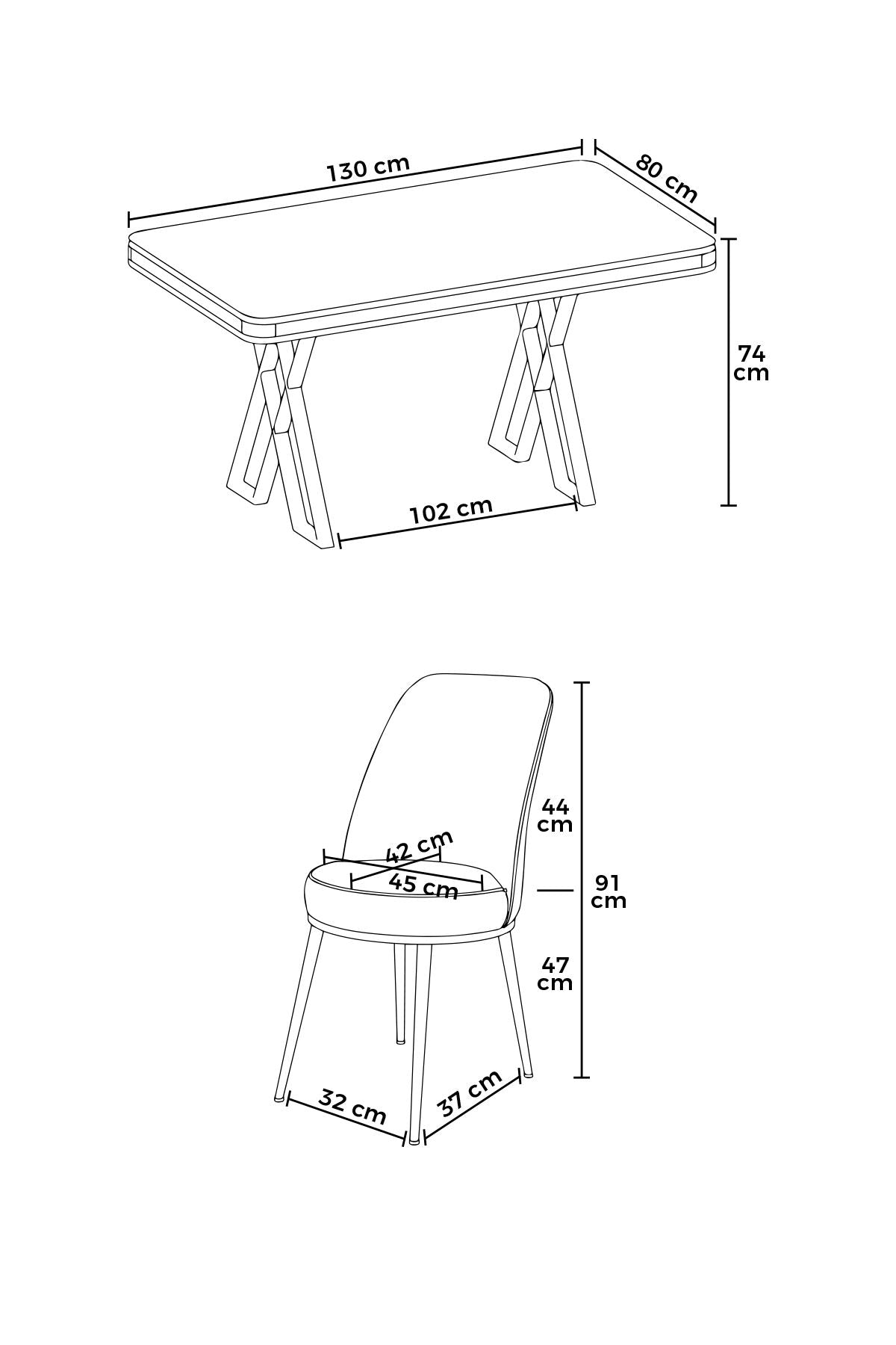 - Dimensões da Mesa de Jantar: Largura: 130 cm, Altura: 74 cm, Profundidade: 80 cm (1 Peça)
