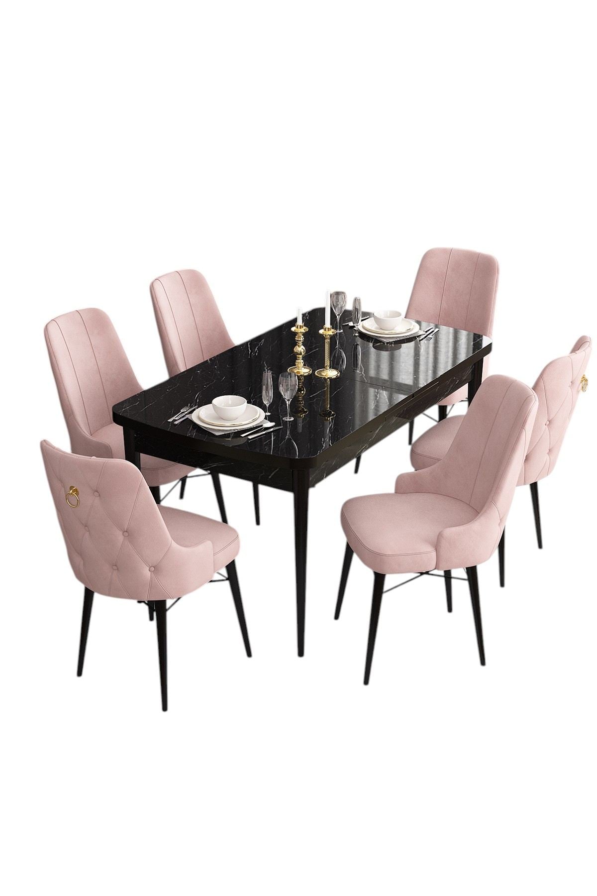 - Cor: Tampo de Mesa em Mármore Preto, Cadeiras Rosas