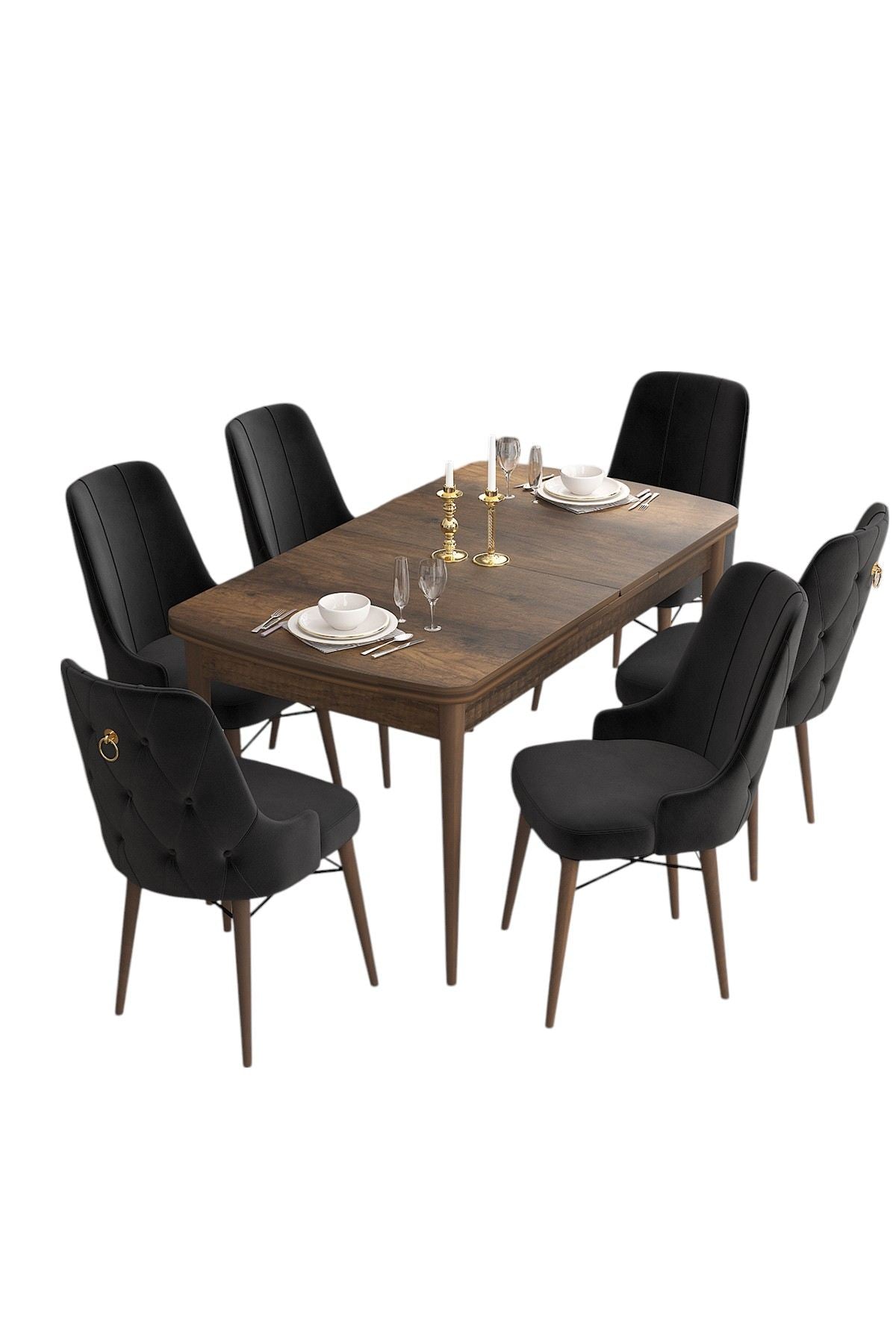 Conjunto de mesa de jantar extensível e cadeiras – 132 cm a 170 cm – Barroco e Preto – MDF e Compensado