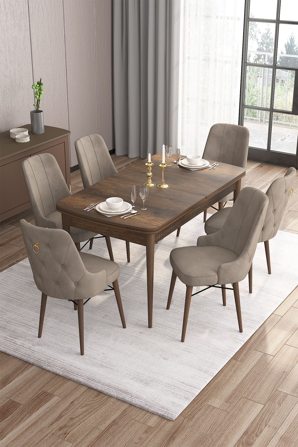 Conjunto de mesa de jantar extensível e cadeiras – 132 cm x 78 cm x 80 cm – Barroco e Cappuccino – MDF