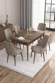 Transforme sua sala de jantar em um espaço elegante e convidativo com nosso requintado Conjunto de Mesa de Jantar Extensível e Cadeiras. Feito com 100% MDF e estruturas de cadeira em compensado, este conjunto exala elegância e durabilidade. As pernas de madeira adicionam um toque de sofisticação, tornando-o uma adição perfeita a qualquer decoração de casa.