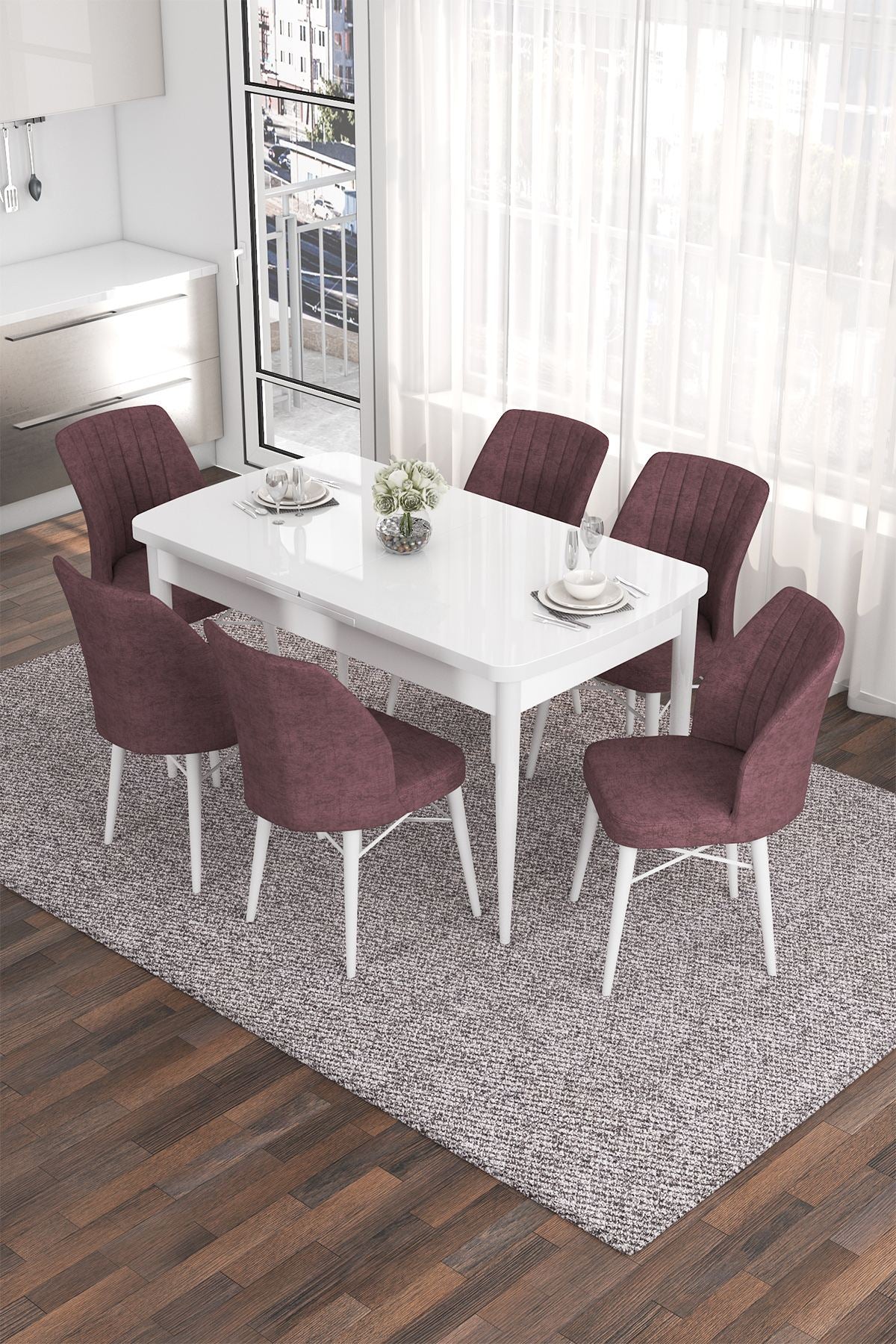 - Tipo de Produto: Conjunto de Mesa de Jantar e Cadeiras Extensível (7 Peças)