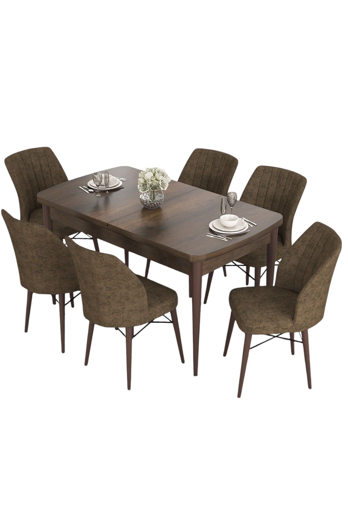 Conjunto de mesa de jantar extensível e cadeiras – 132 cm a 170 cm (extensível) – Barroco e Marrom – MDF e metal