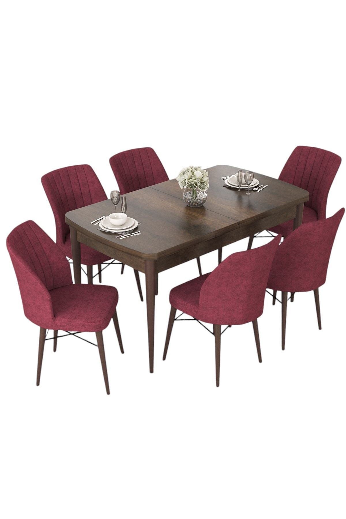 Conjunto de Mesa de Jantar Extensível e Cadeiras – 114 cm x 78 cm x 70 cm – Barroco e Burgundy – MDF e Metal