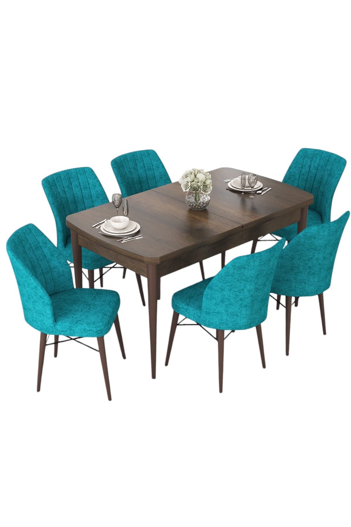 Conjunto de mesa de jantar extensível e cadeiras – 114x70 cm – Turquesa e Barroco – MDF e metal