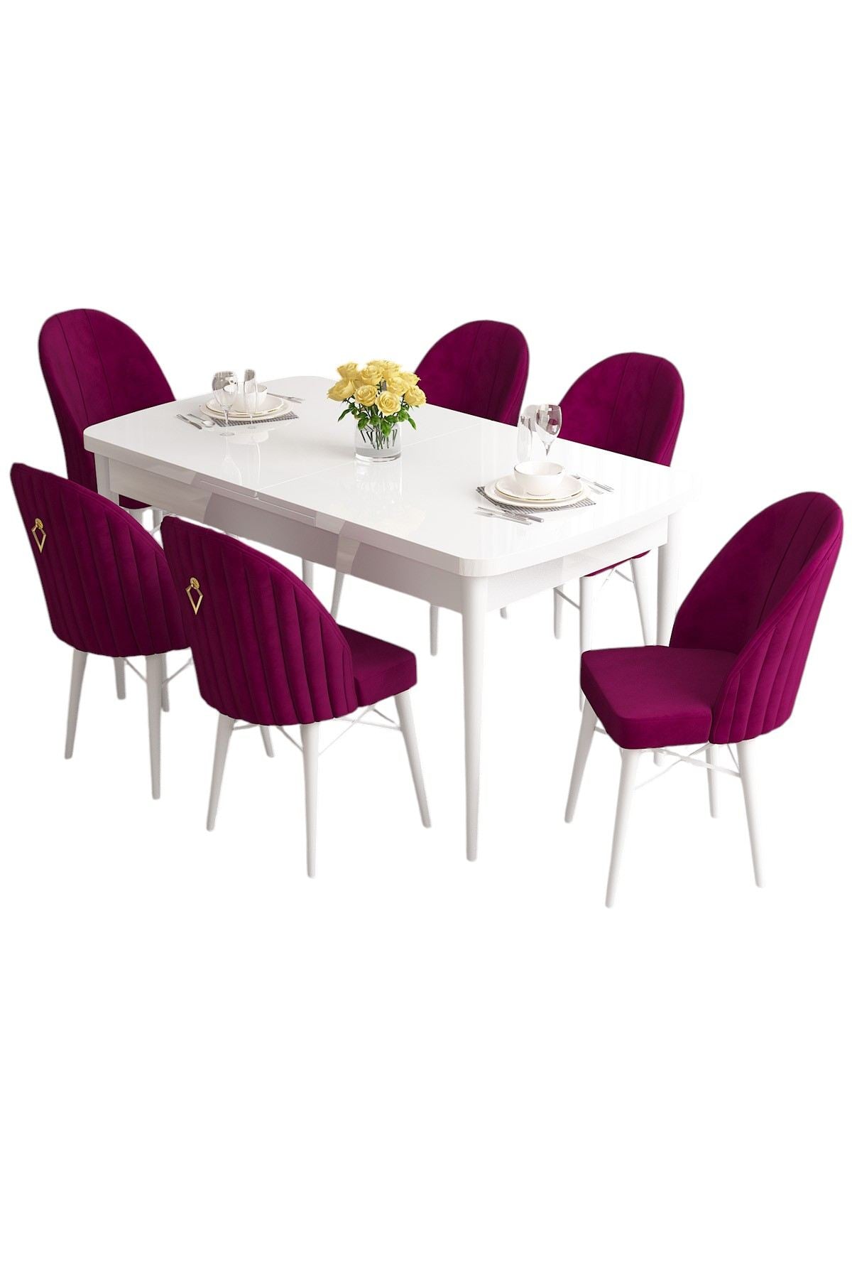 Conjunto de mesa de jantar extensível e cadeiras (7 peças)-Roz-Ameixa Branca