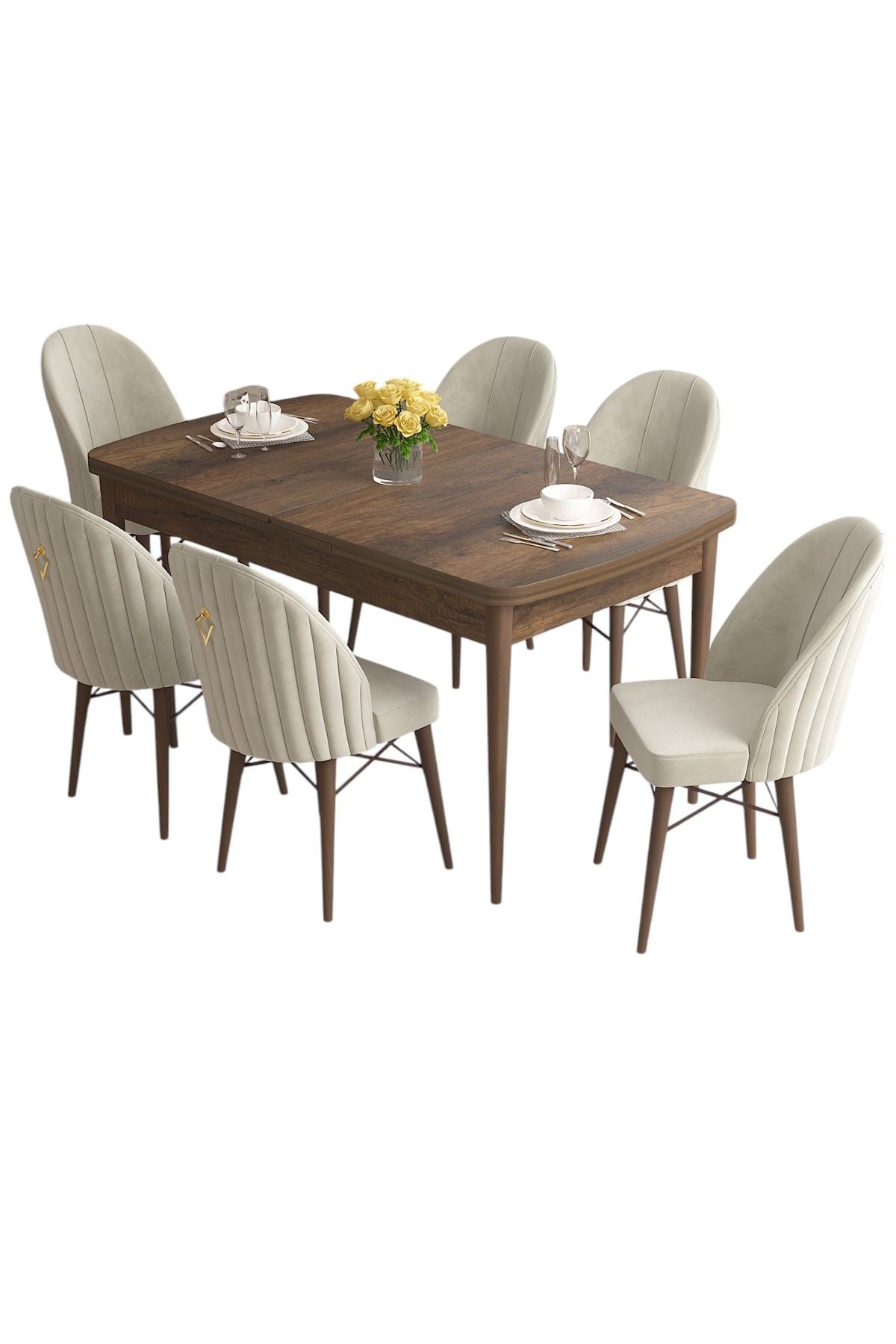 Conjunto de mesa de jantar extensível e cadeiras (7 peças) – 132 cm x 80 cm x 78 cm – Barroca e Creme – MDF e madeira