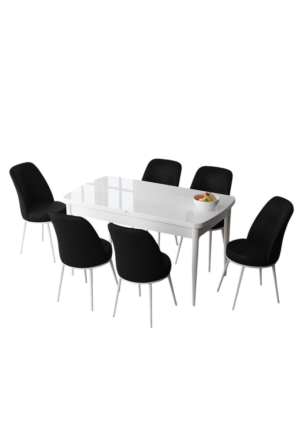 Conjunto de mesa de jantar extensível e cadeiras – 132 cm a 170 cm – Branco e Preto – MDF e Metal