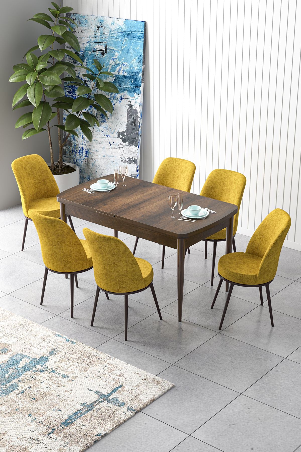 Conjunto de mesa de jantar extensível e cadeiras – 132 cm largura, 78 cm altura, 80 cm profundidade – Barroco e Mostarda – MDF e metal