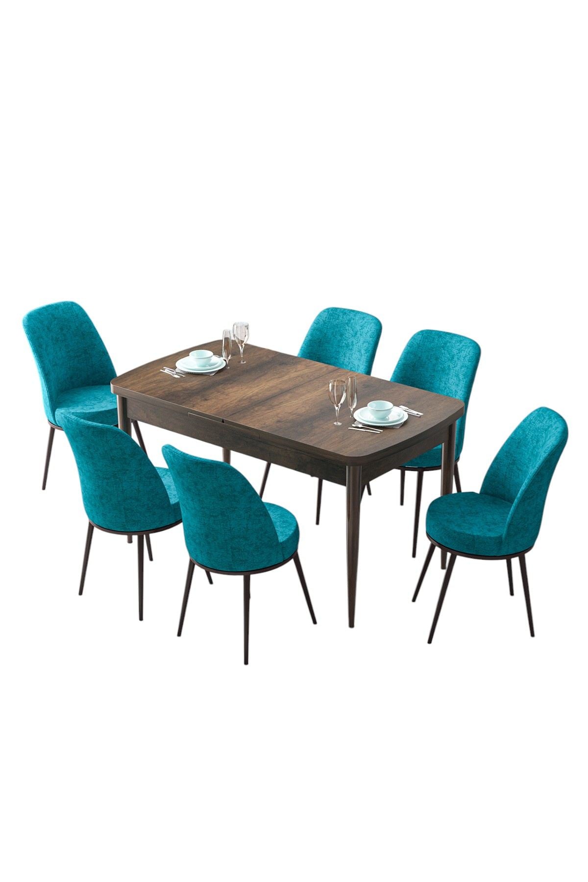 Conjunto de mesa de jantar extensível e cadeiras (7 peças) – 132 cm largura, 78 cm altura, 80 cm profundidade – Turquesa, Barroco – MDF e metal