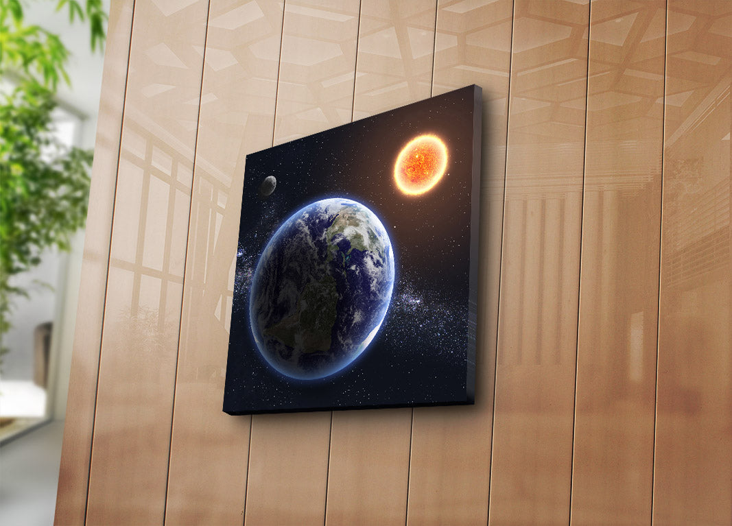 A combinação única de tela suede premium com uma moldura de madeira artesanal cria uma peça de arte que não só decora, mas eleva o nível estético de qualquer divisão. O formato quadrado clássico de 45x45 cm adapta-se perfeitamente a salas de estar, quartos, escritórios ou corredores.