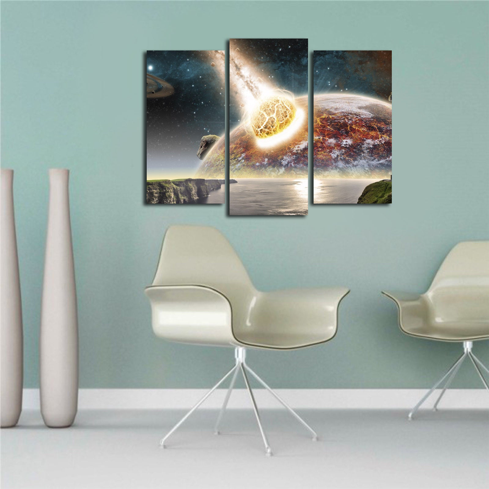 Conjunto de Telas Decorativas Multicolor (3 Peças) 3PATK-4 – Canvas Suede, Moldura de Madeira, 45 x 66 cm