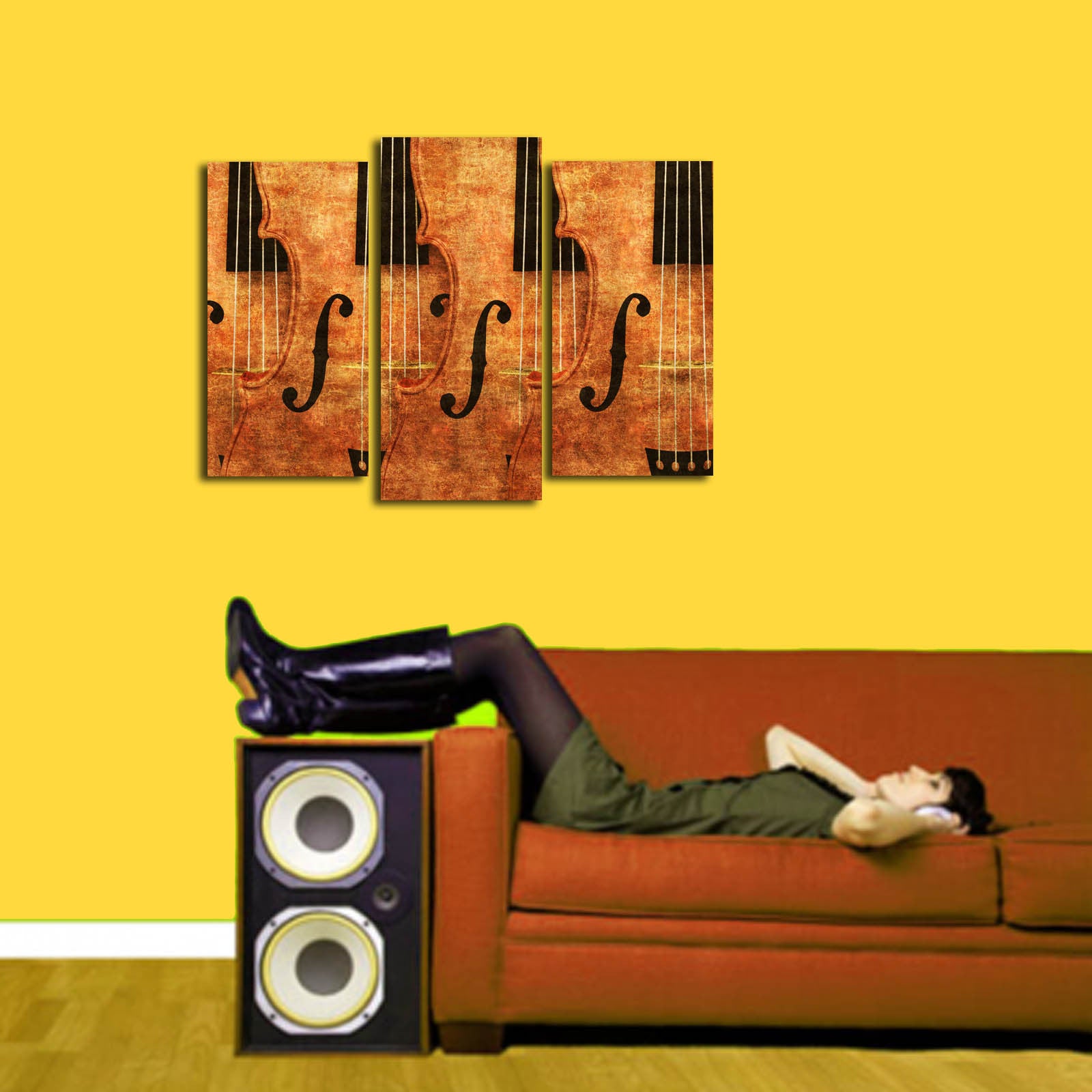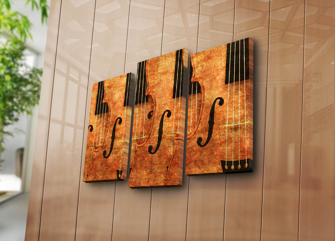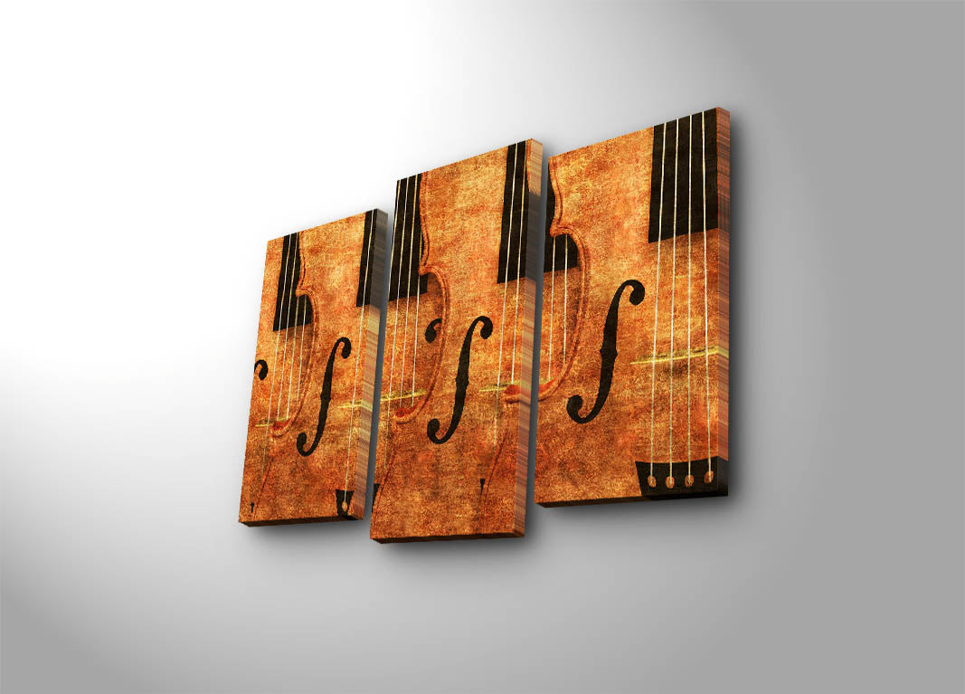 Tela Decorativa Multicolor em Suede – Conjunto 3 Peças (3PATK-14), Moldura de Madeira 3 cm, Tamanho Total 45 x 66 cm