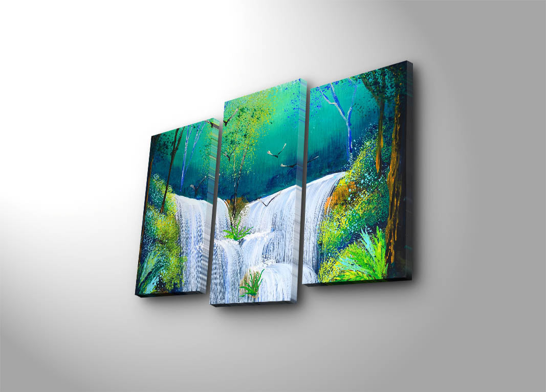 Tríptico em Tela Suede 100% Multicolor com Moldura de Madeira — 3PATK-23