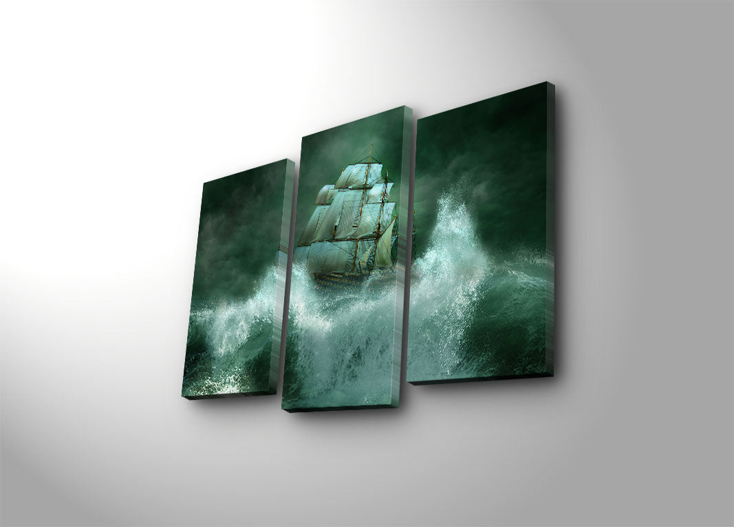 Tela Decorativa Tripla 3PATK-43 (Multicolor) – 3 Peças, Camurça 100%, Moldura de Madeira 3 cm, Tamanho Total 45x66 cm