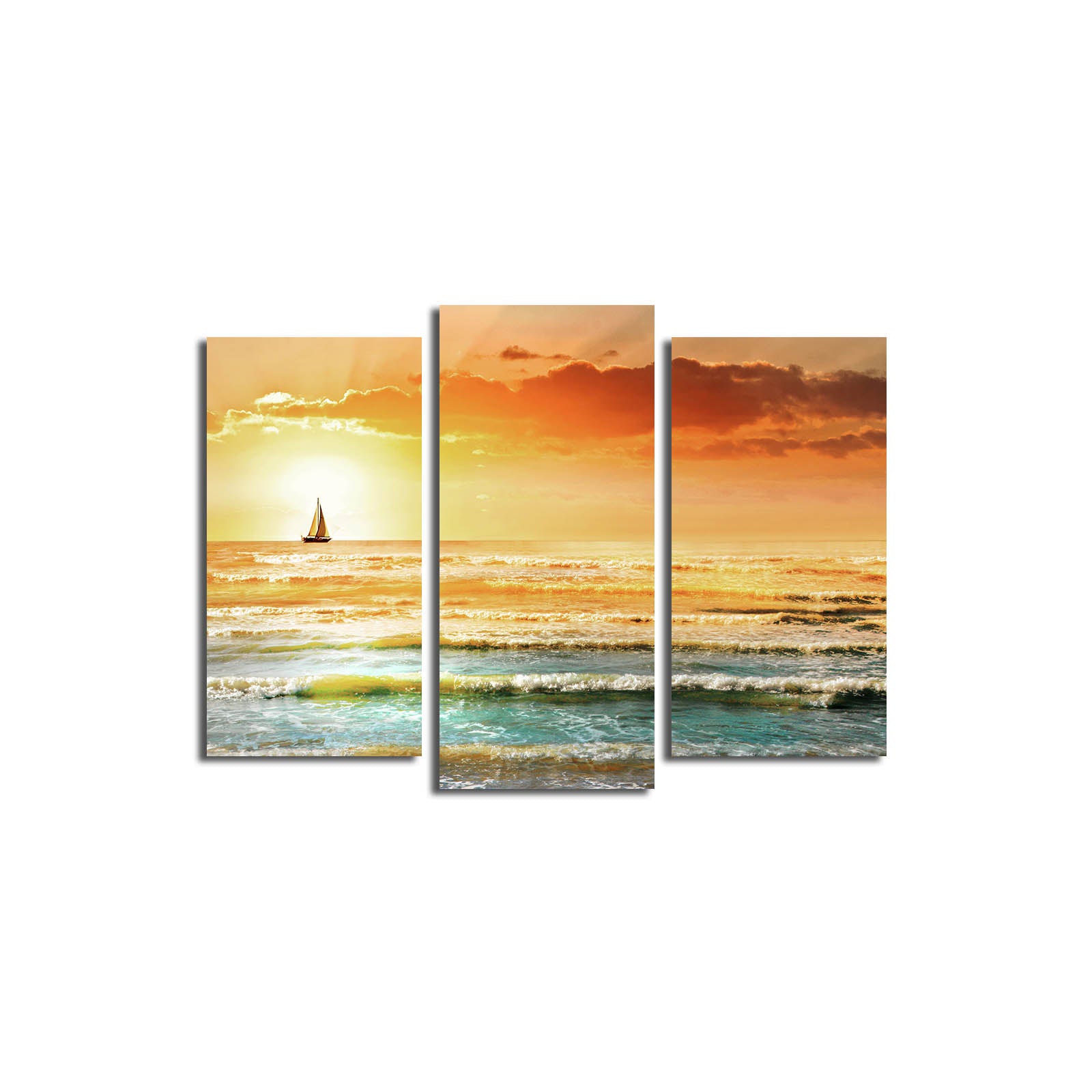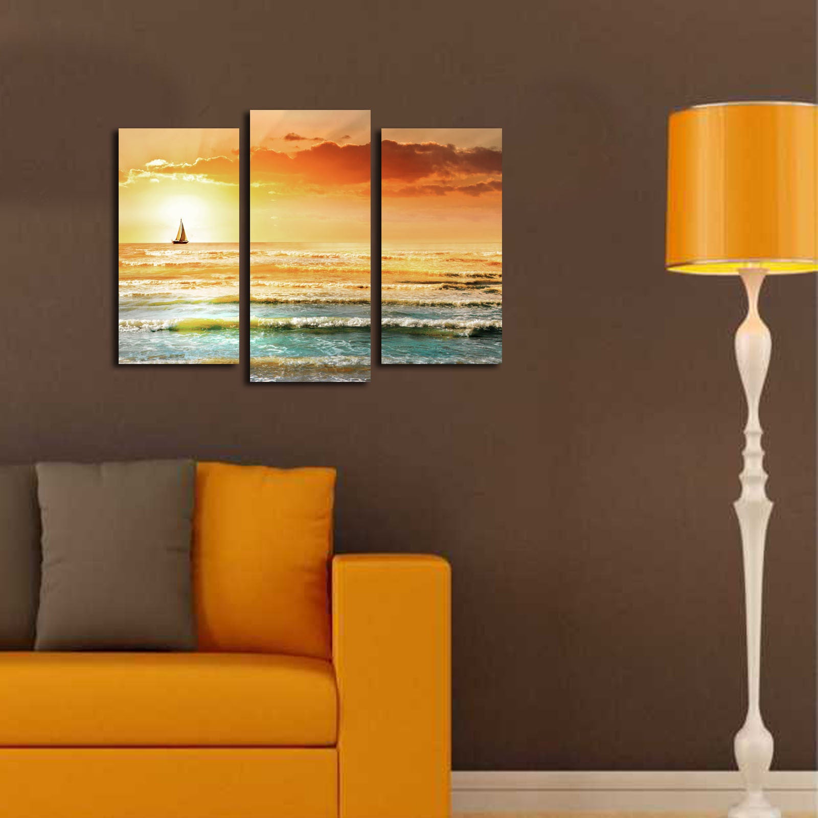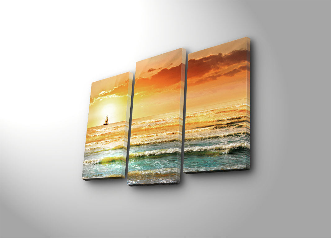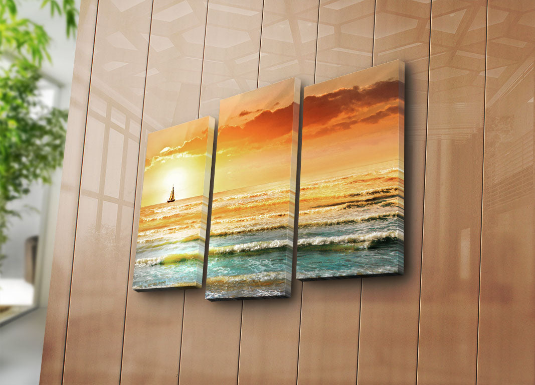 Tela Decorativa Multicolor 3 Peças 3PATK-58 — Suede 100% com Moldura de Madeira, Total 45x66 cm