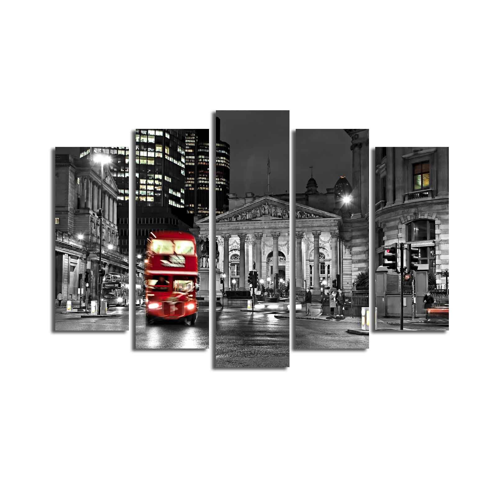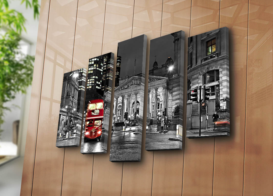 Quadro Decorativo em Tela (Conjunto de 5 Peças) Multicolor — 70 x 105 cm, Tela Suede 100%, Moldura de Madeira 3 cm