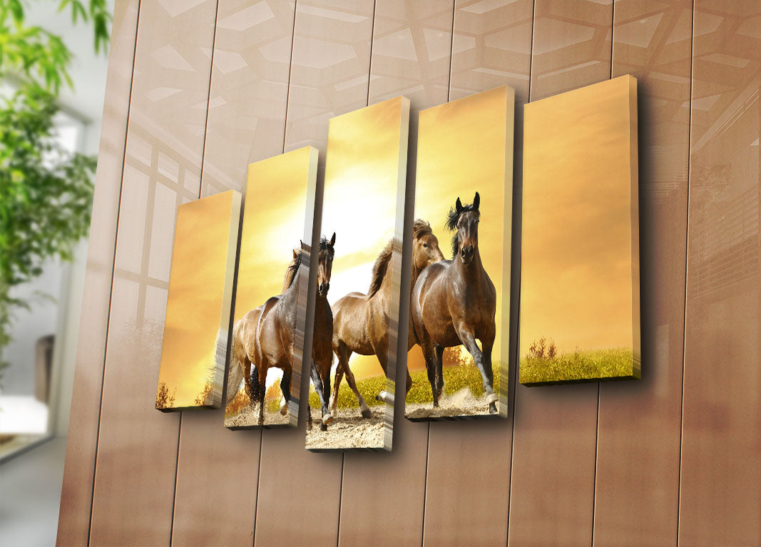 Ideal para salas de estar, quartos, escritórios ou qualquer espaço que necessite de um toque artístico sofisticado. A disposição em 5 peças cria profundidade visual e permite múltiplas combinações de montagem, adaptando-se perfeitamente ao seu estilo pessoal.