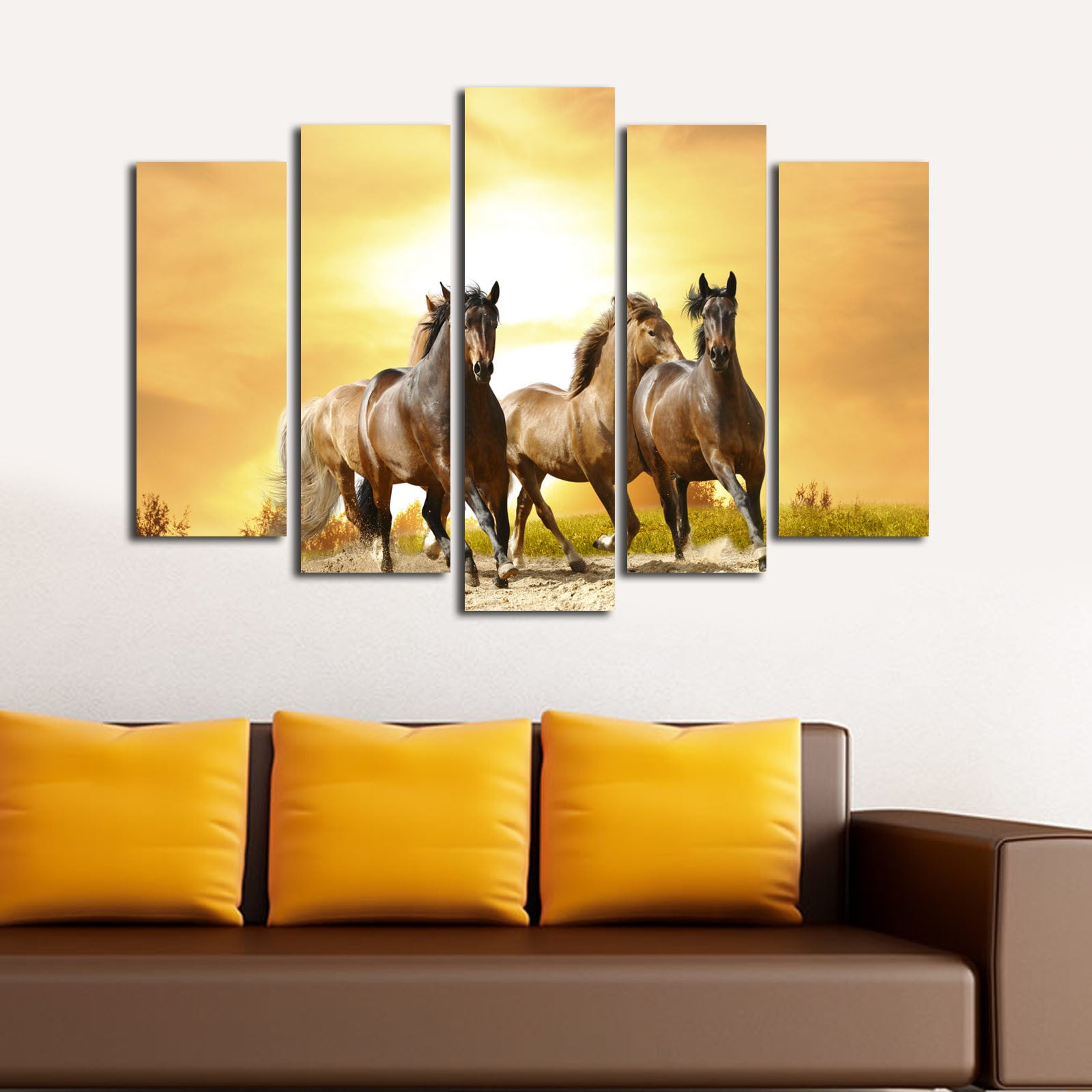 Conjunto de Telas Decorativas Multicor (5 Peças) – Suede 100%, Moldura de Madeira 3 cm, 70 x 105 cm – 5PATK-13
