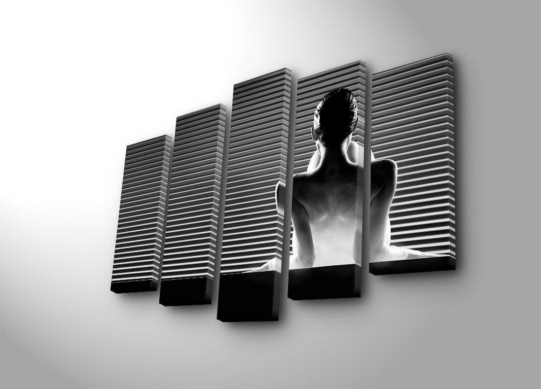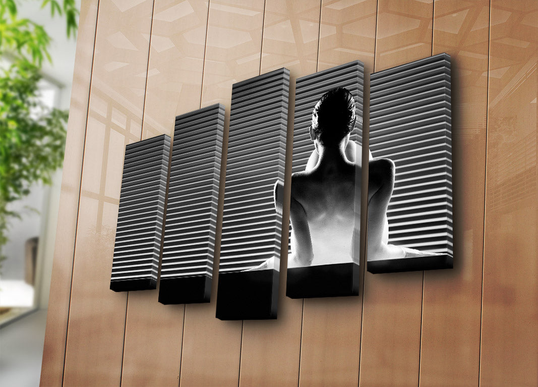 Quadro Decorativo em Tela (5 Peças) Multicolor 70x105 cm — Suede Canvas, Moldura 100% Madeira (5PATK-42)