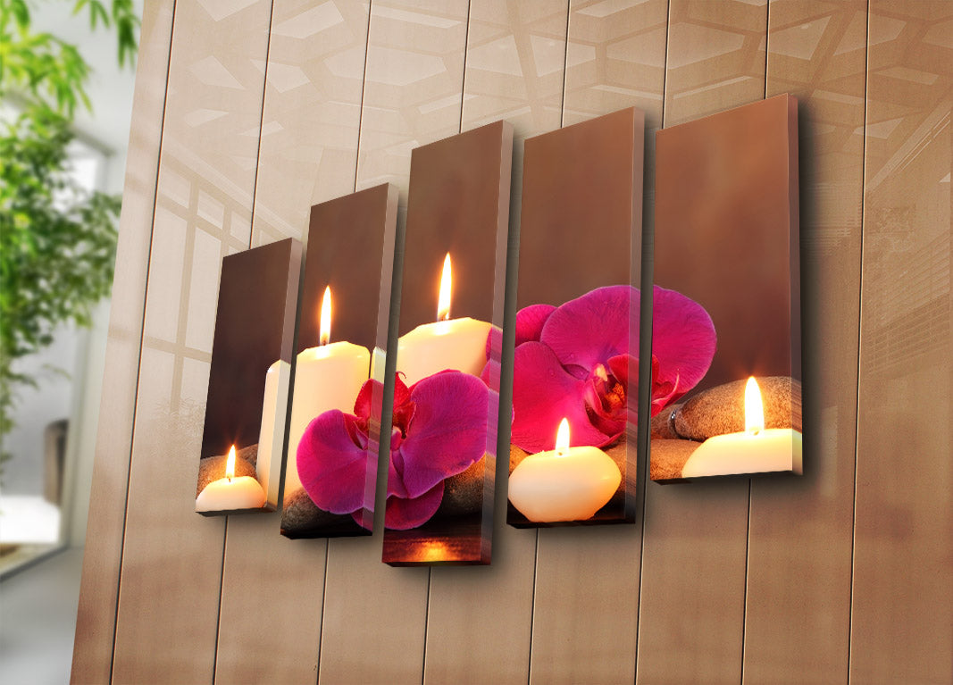 Conjunto de Quadros Decorativos em Canvas Suede 100% (5 Peças), Multicolor, Moldura de Madeira 3 cm, 70 x 105 cm – 5PATK-47