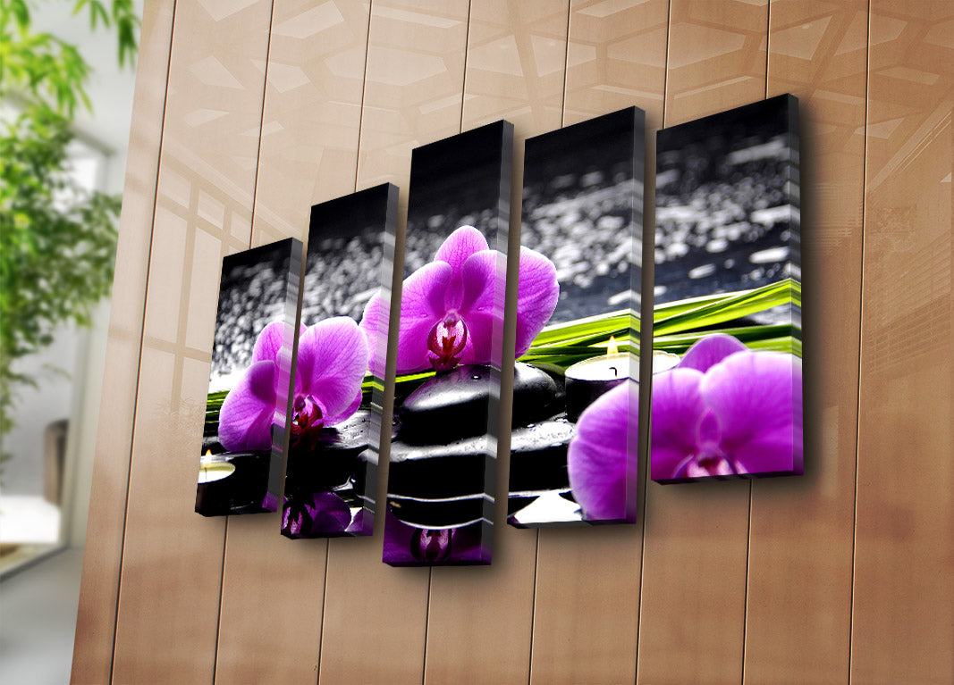 Quadro Decorativo em Tela Suede (5 Peças) Multicolor – 70x105 cm – Moldura 100% Madeira